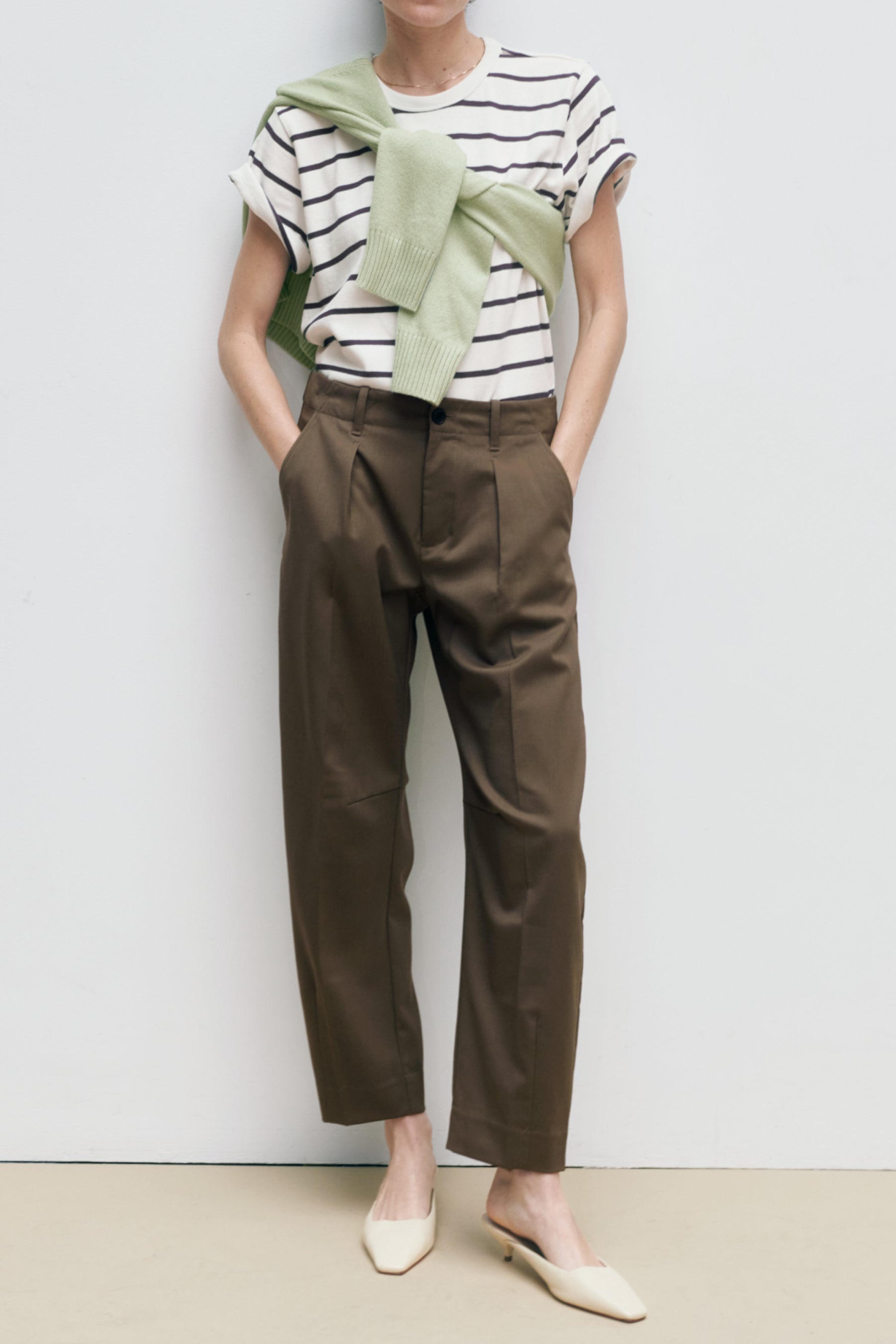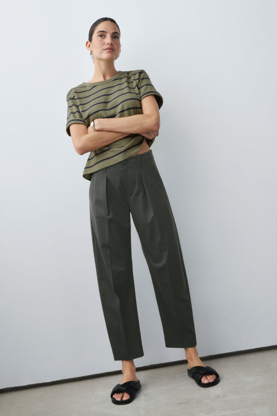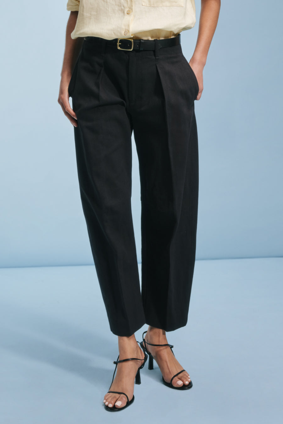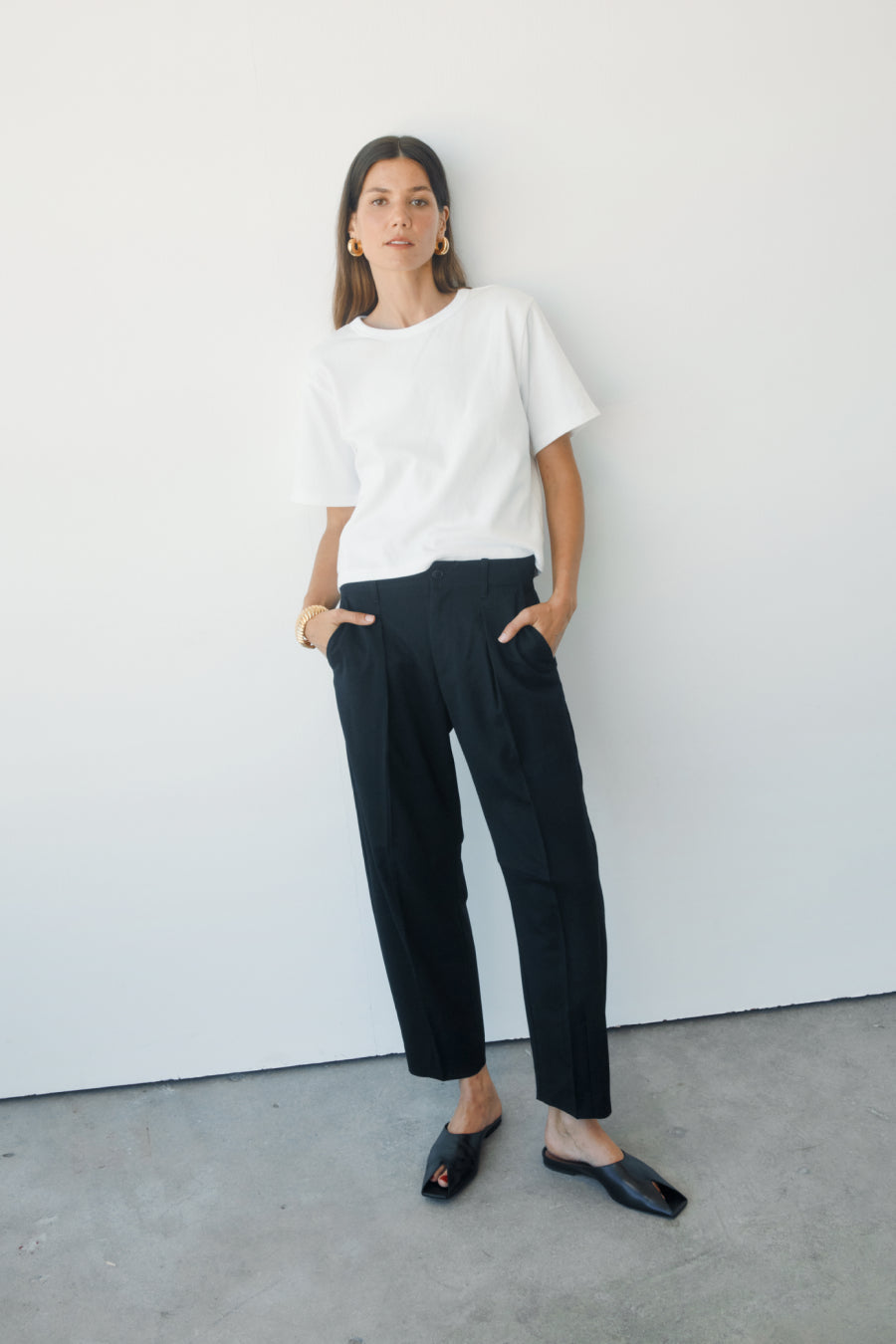 An everyday luxury. Baby barrel leg with classic menswear pleats for a laidback silhouette that makes even the humble tee look polished.