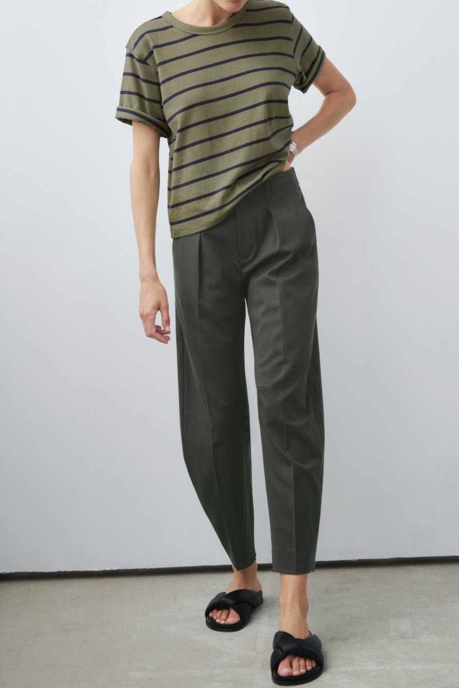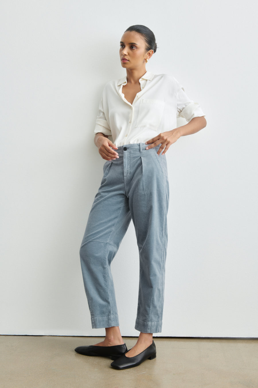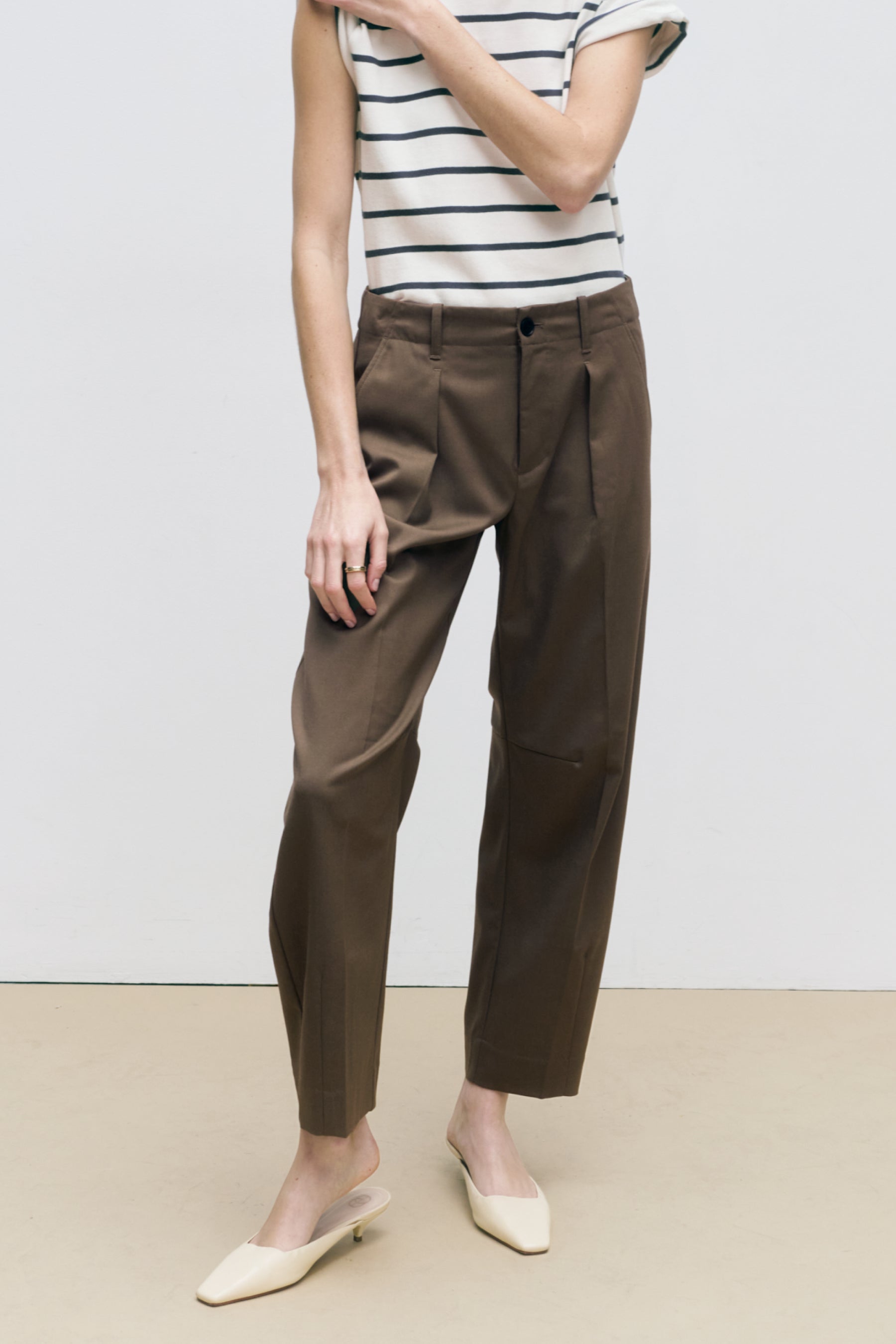 An everyday luxury. Baby barrel leg with classic menswear pleats for a laidback silhouette that makes even the humble tee look polished.