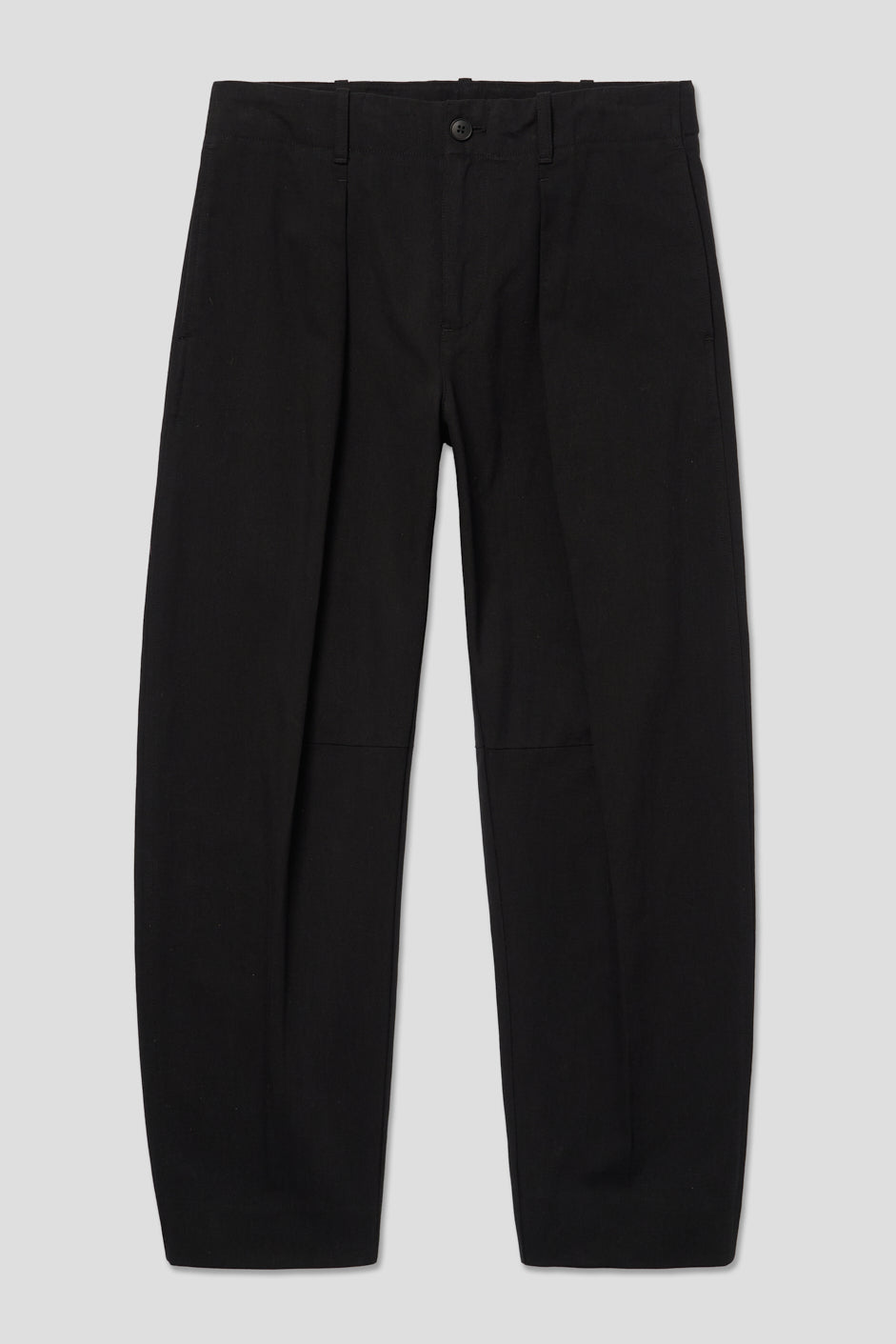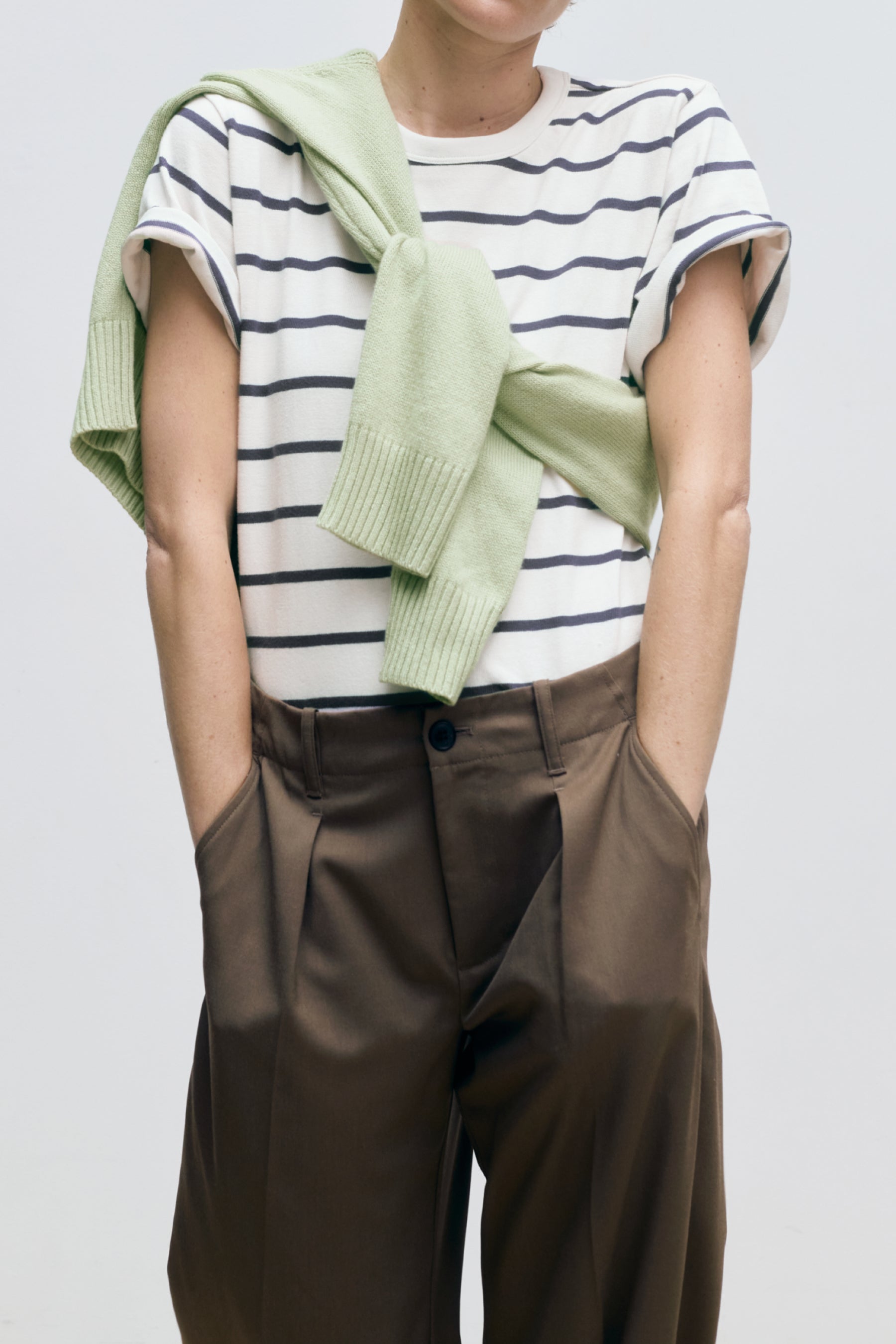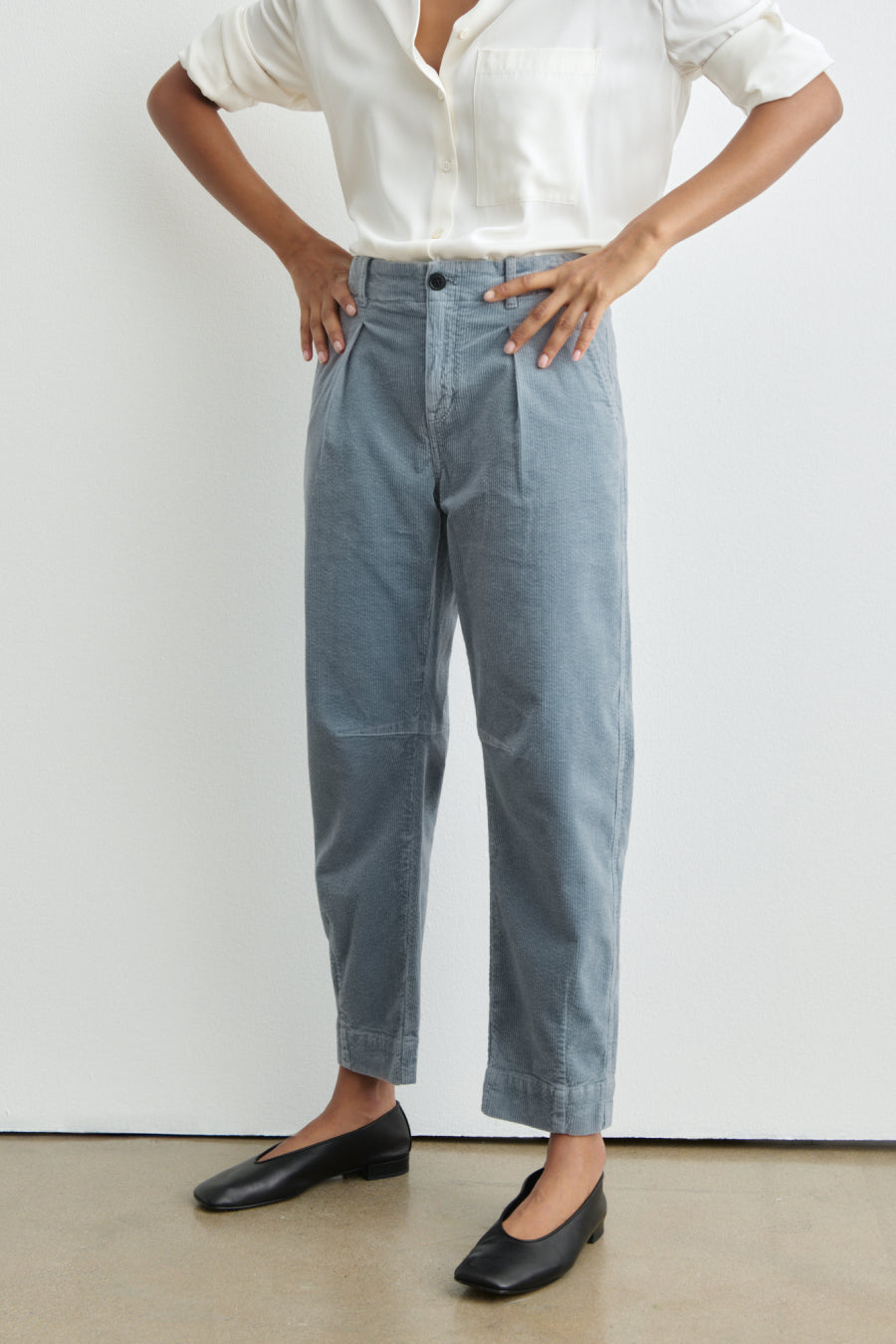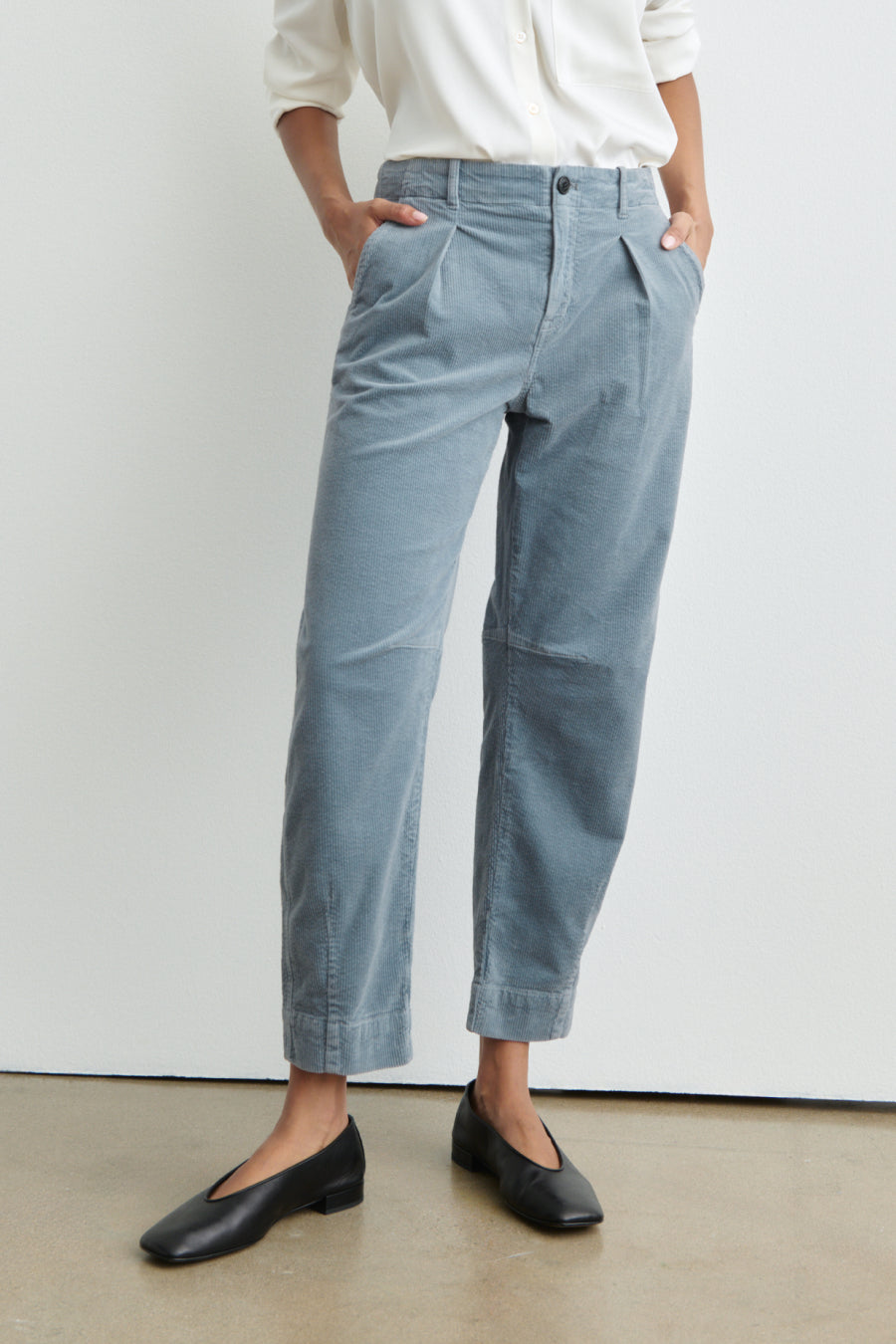 An everyday luxury. Baby barrel leg with classic menswear pleats for a laidback silhouette that makes even the humble tee look polished.