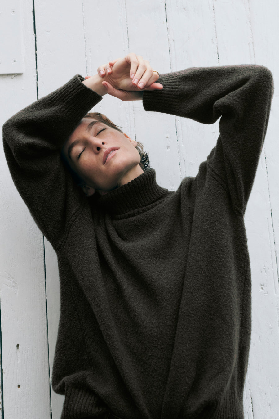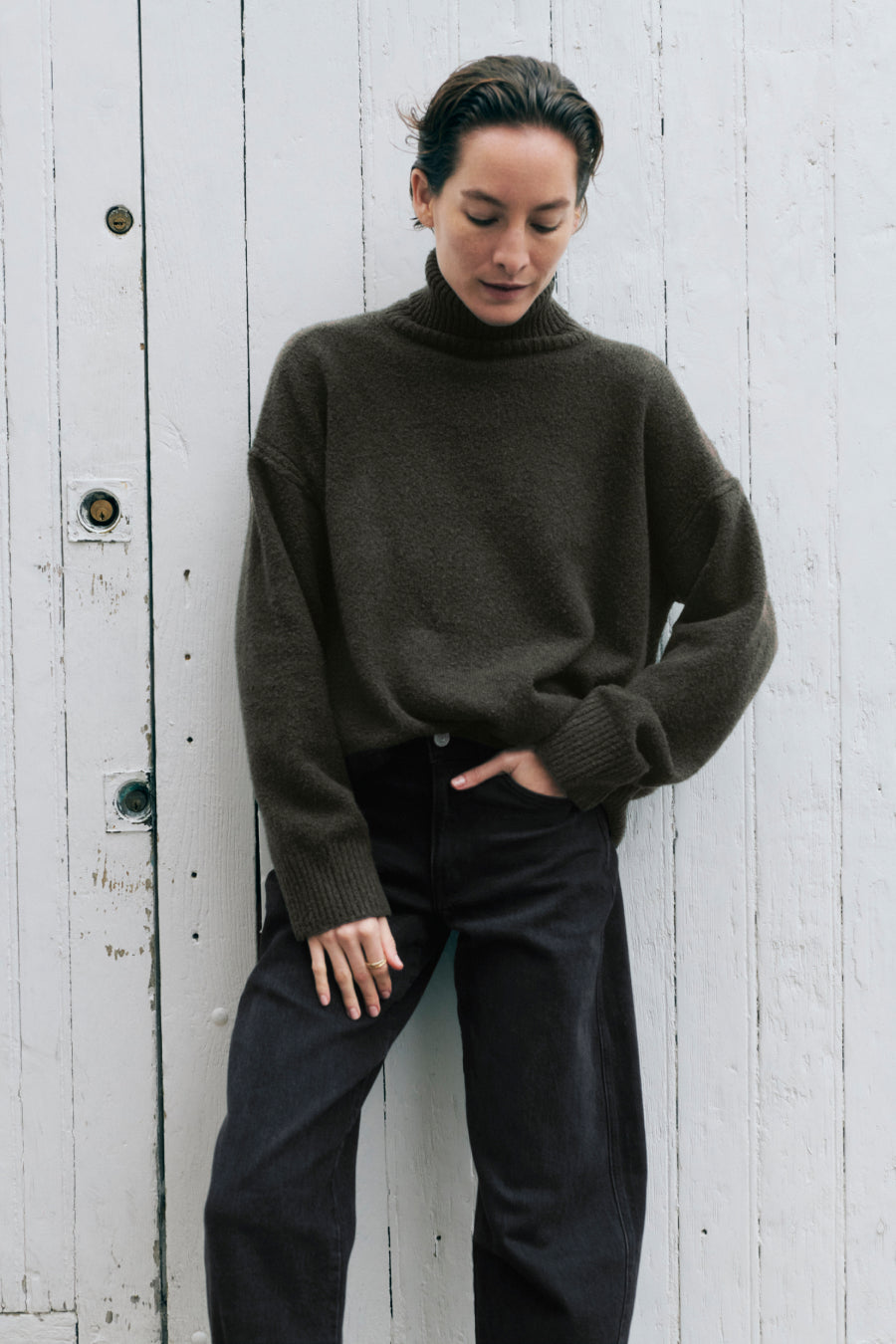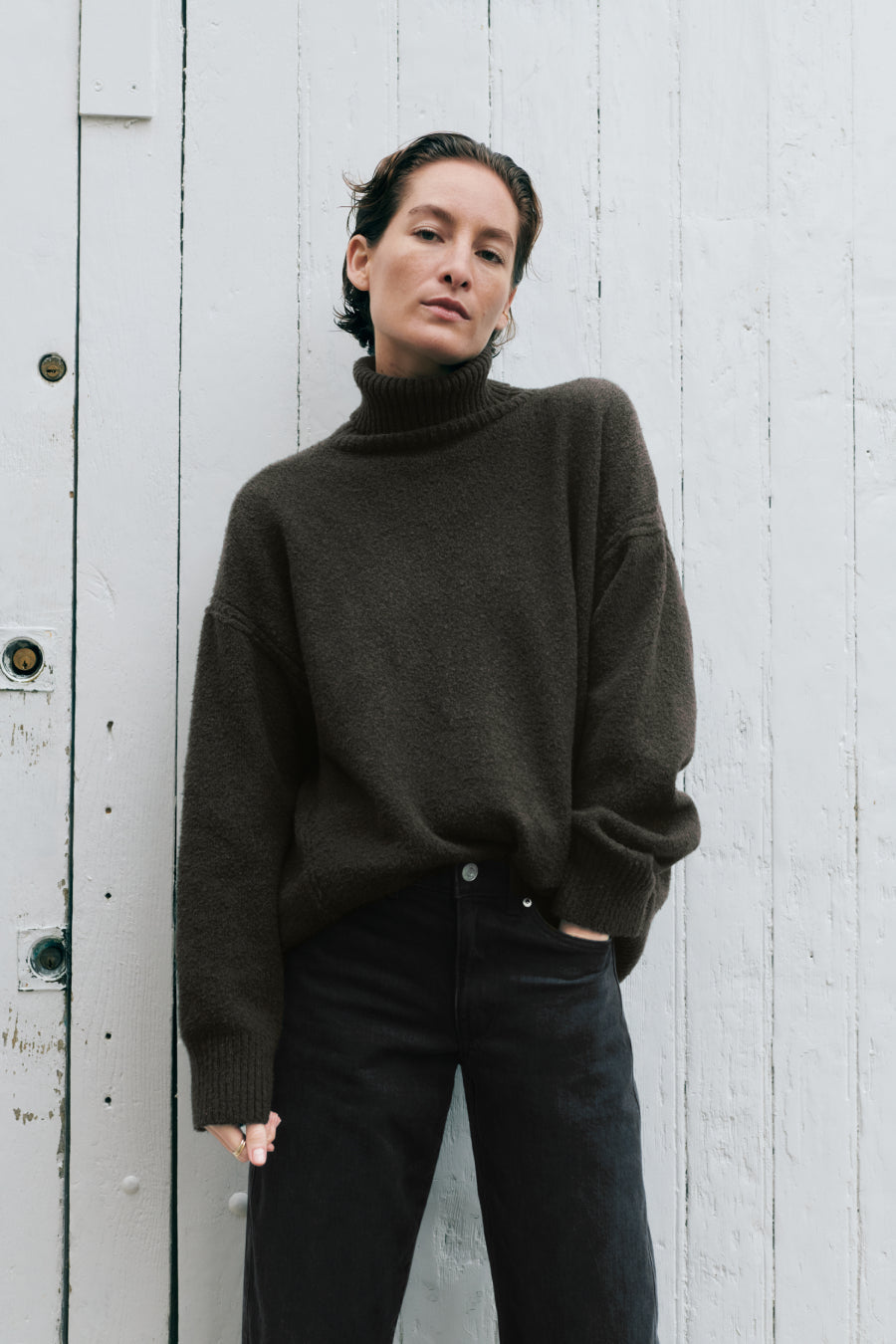 Oooo baby. Here's your new favorite everyday sweater. A chic AF, cozy as heck, oversized, bum-covering turtleneck in a fuzzy, cozy, washable cotton blend.