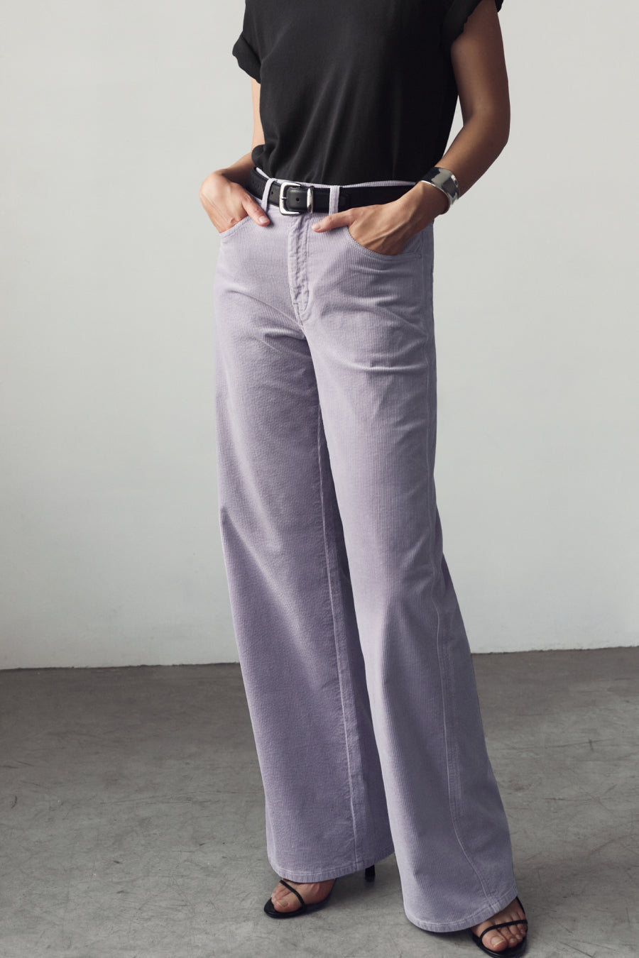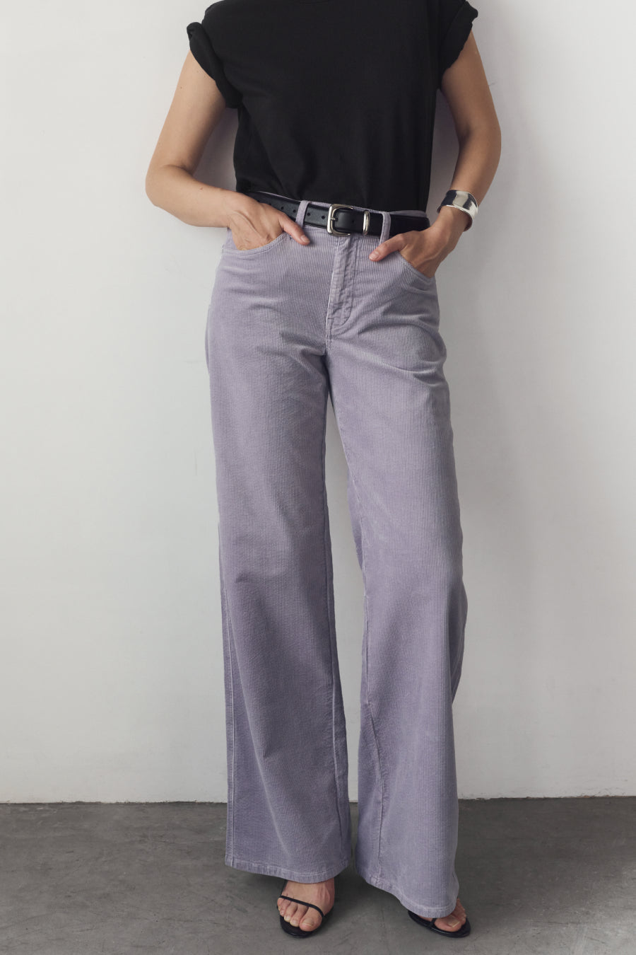 Skydust: Soft, light, and stretchy medium wale cotton corduroy in dusty soft purple.