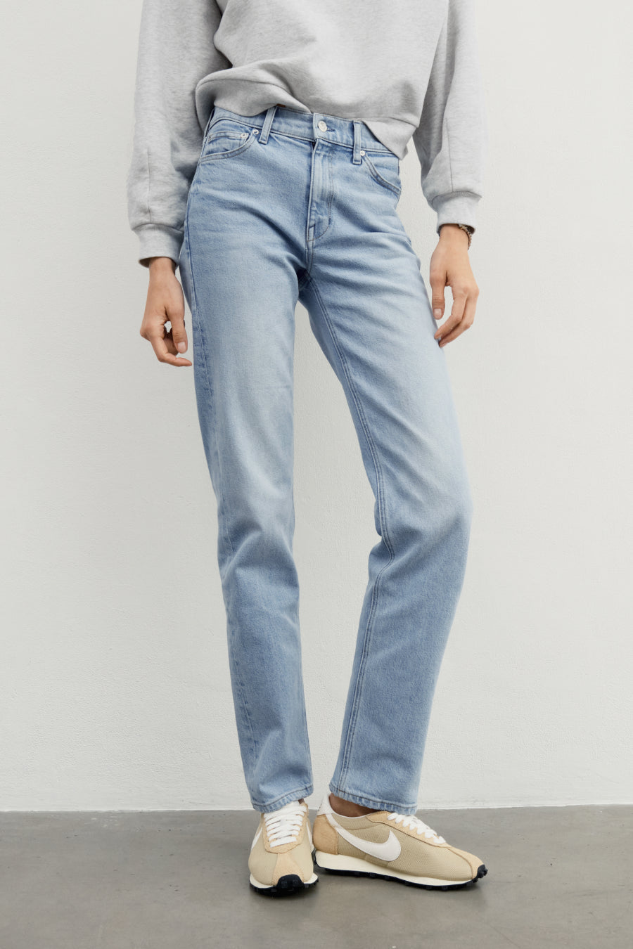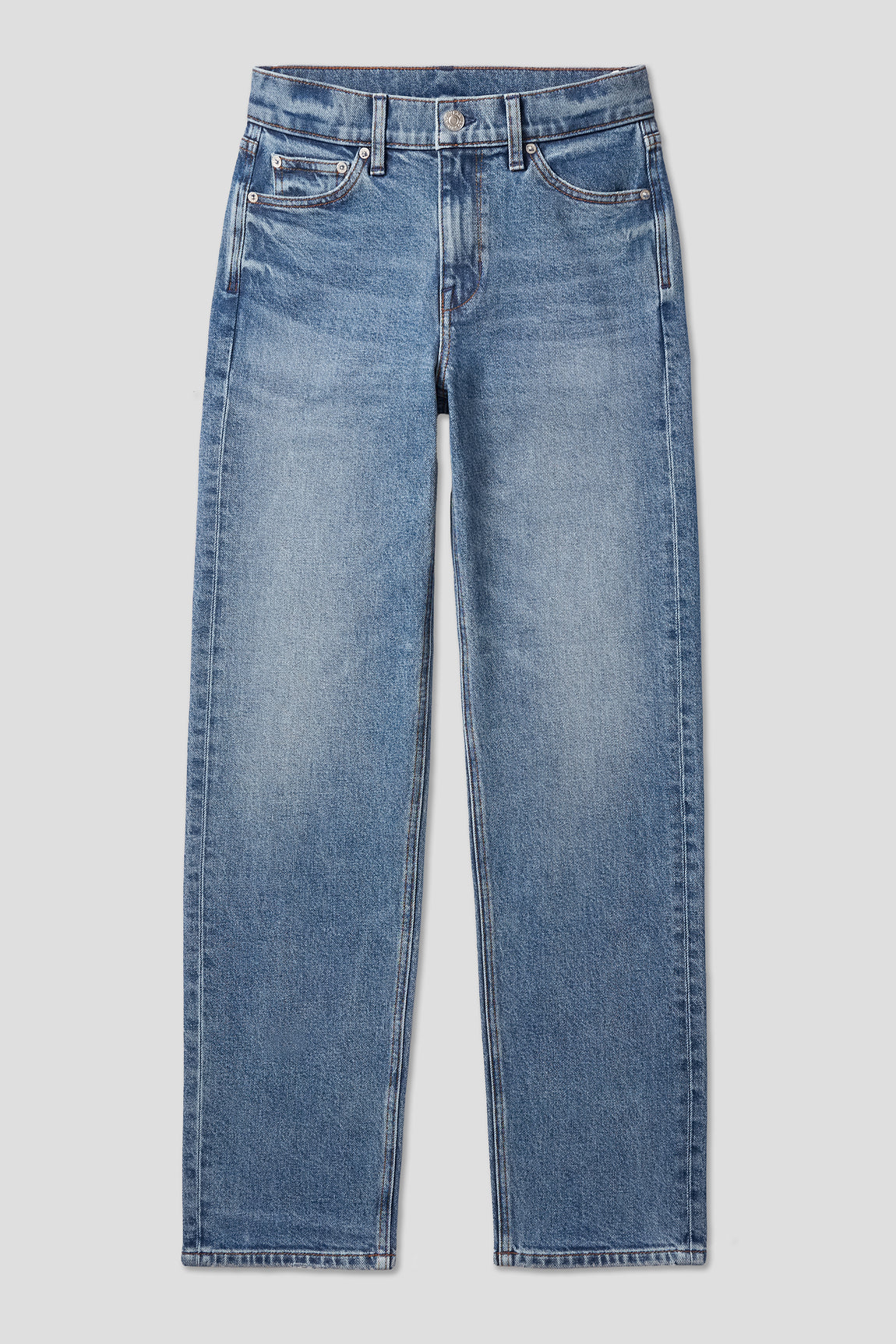 Engineered to fit you like a glove. Inspired by a vintage pair of jeans our designer can't part with (and 1,000 times more comfortable). Superior denim with that aspirational heritage rigid jean "look" and a welcome modern touch of secret stretch. Mid-to-high rise with a fitted waist and a scooped-up backside. Tapered leg with just the right amount of room in the hip, thigh and knee. Full length with a small break on the foot.