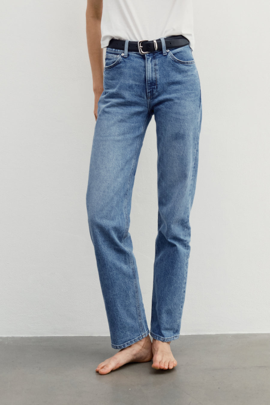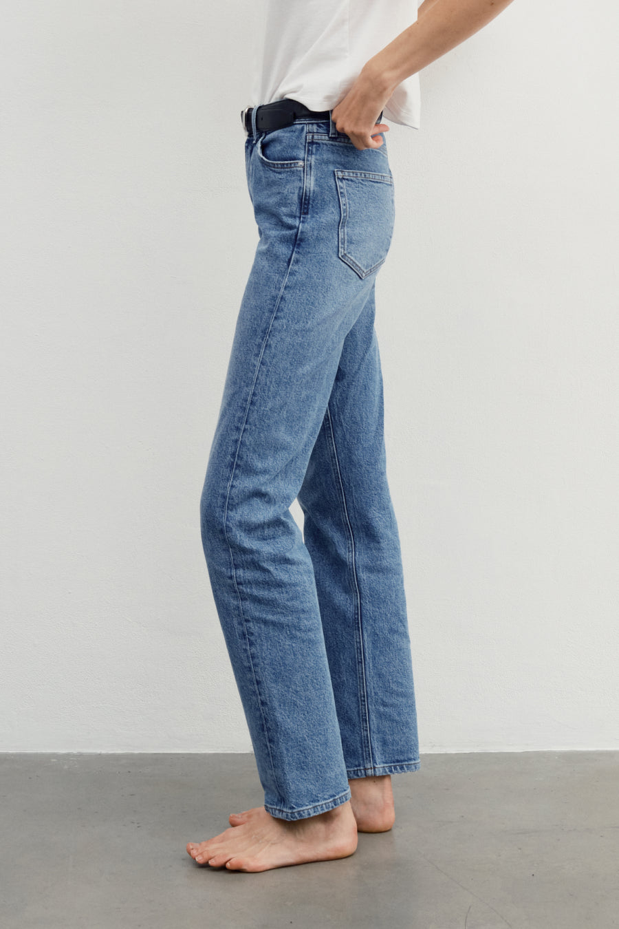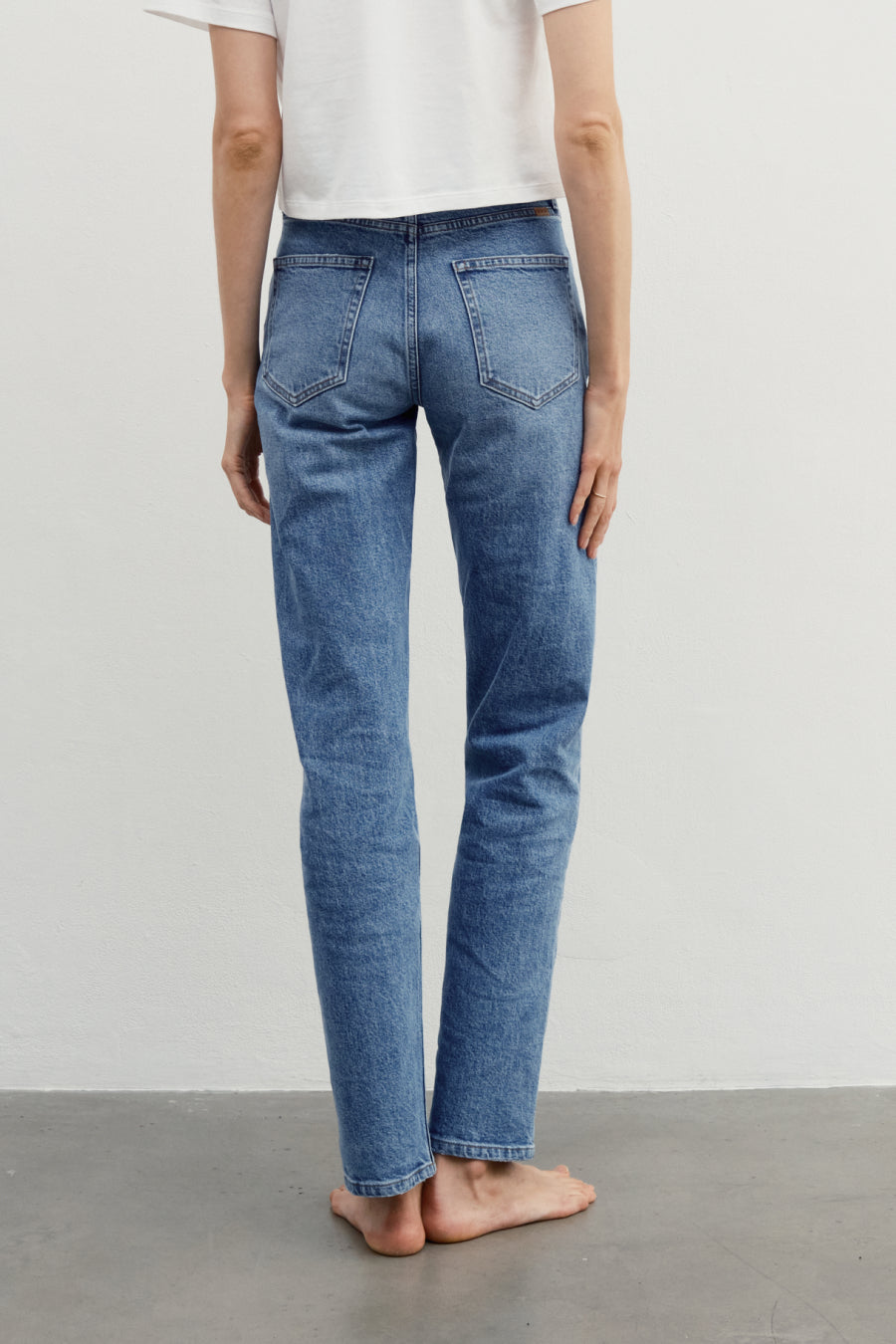 Yada Yada: Medium wash with vintage character and light distressing along the pockets.