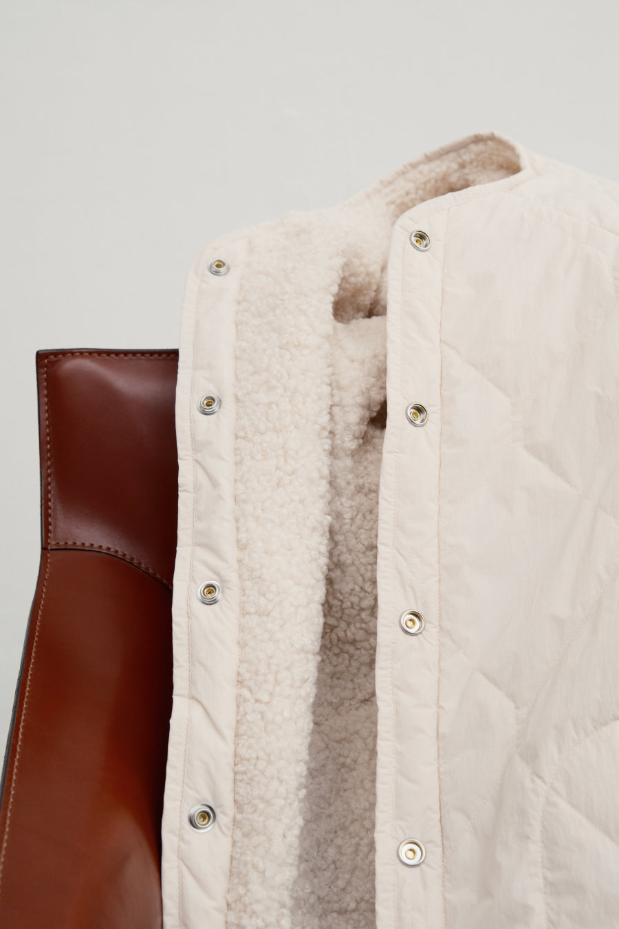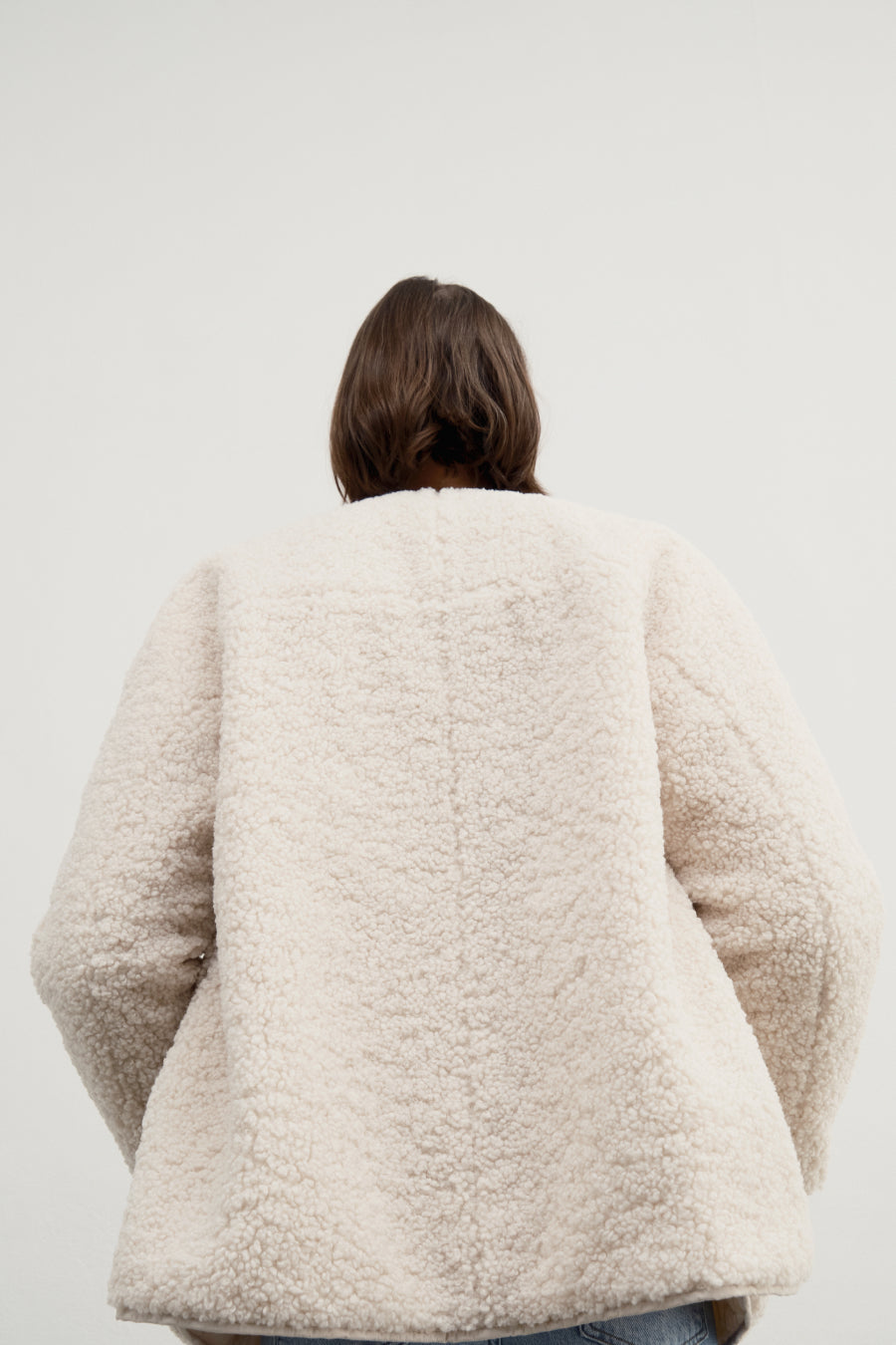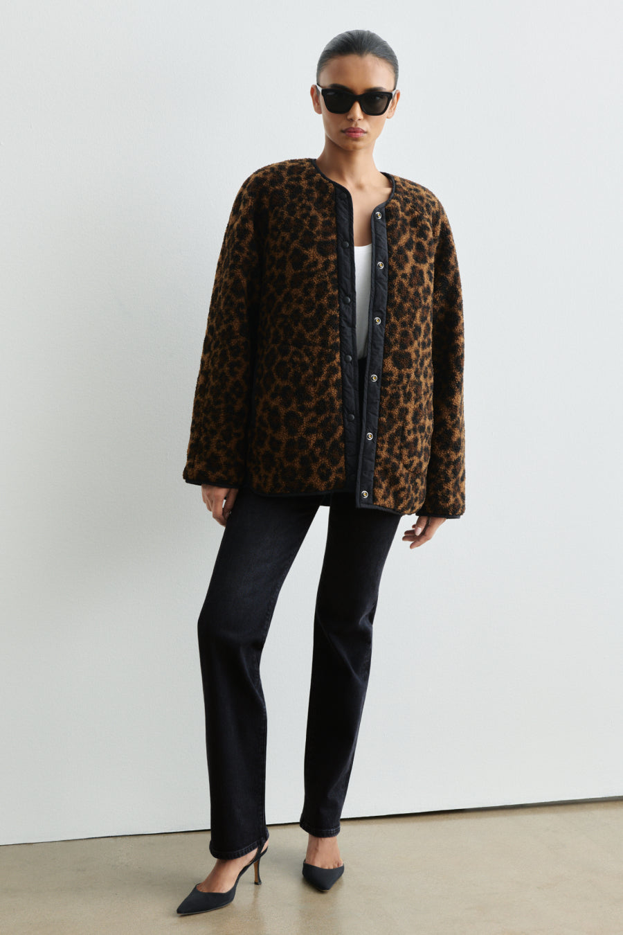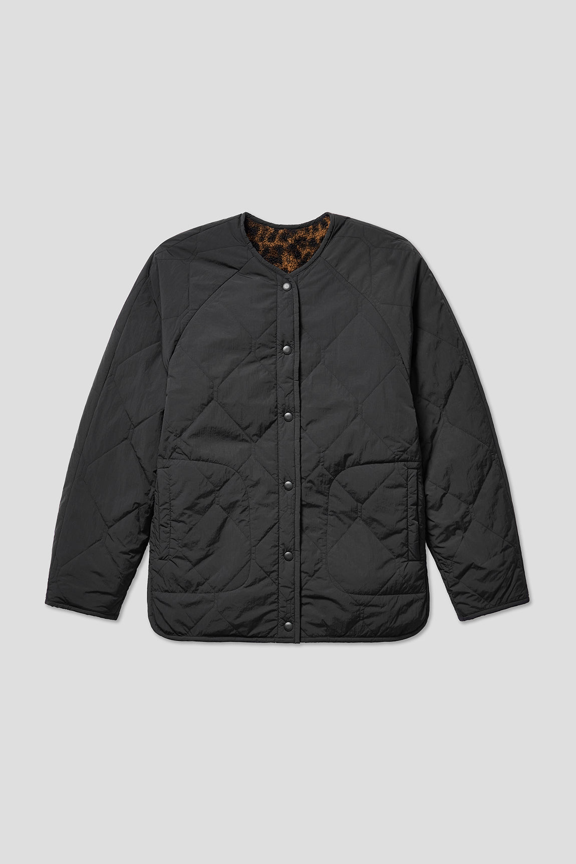 This is one of those pieces that, once you own it, will make you forget how you ever lived without it. A reversible fleece car coat with a chic collarless neckline. Snap closures, batted quilting, pockets on both sides.?