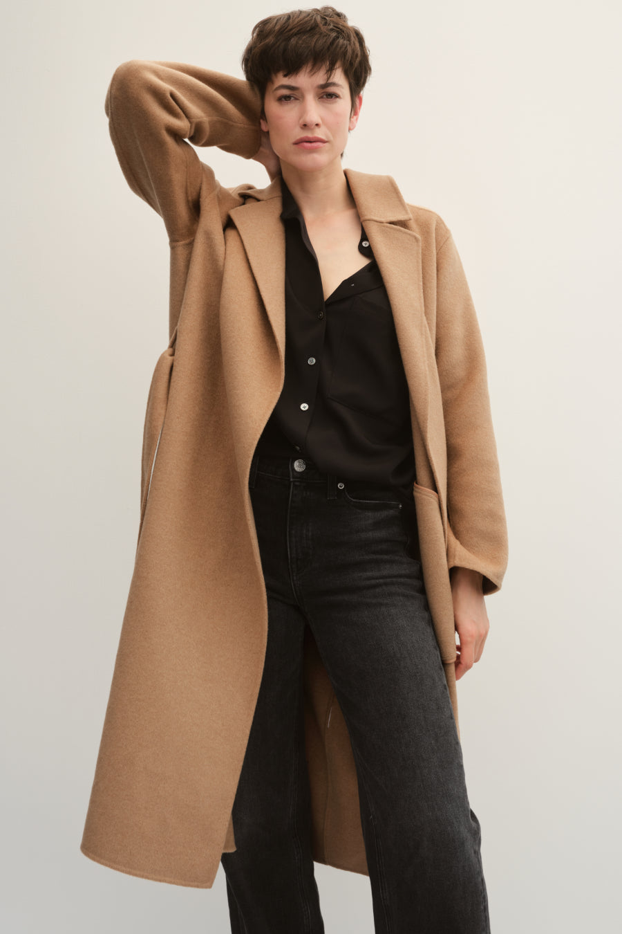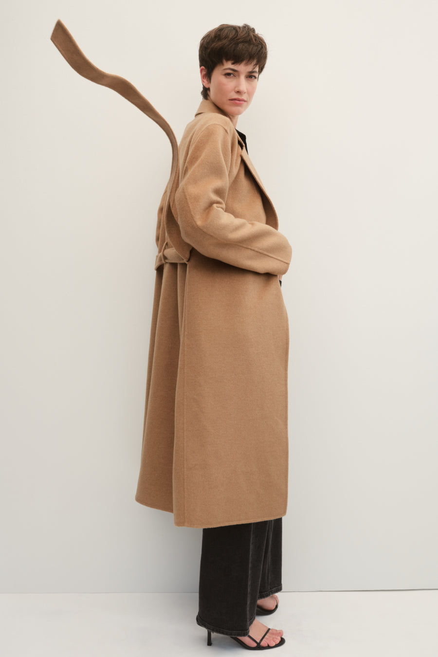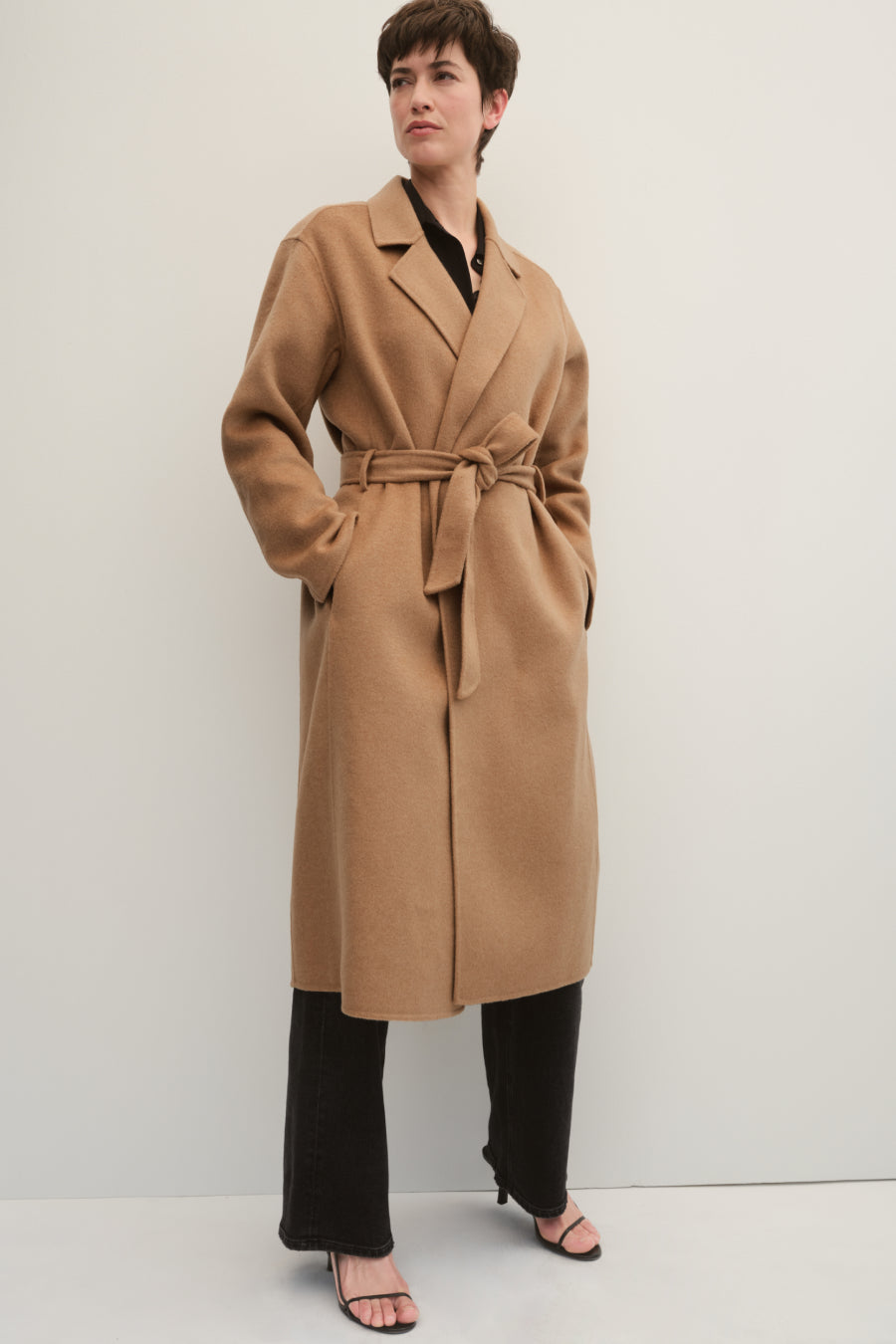 A worthy indulgence. Decadent, double-faced Italian wool. Unlined, so it feels more like a blanket than a coat. Cut to for an easy, robe-like silhouette, but if you like your coats to fit a bit more tailored, we recommend sizing down. Removable belt for versatile styling.