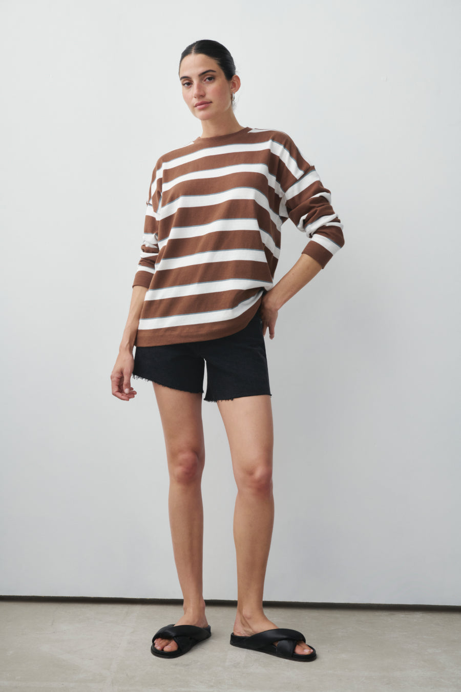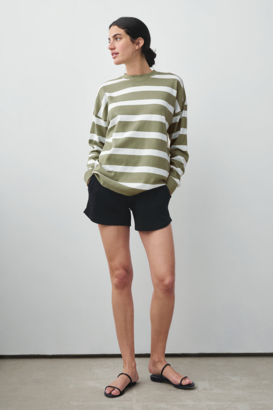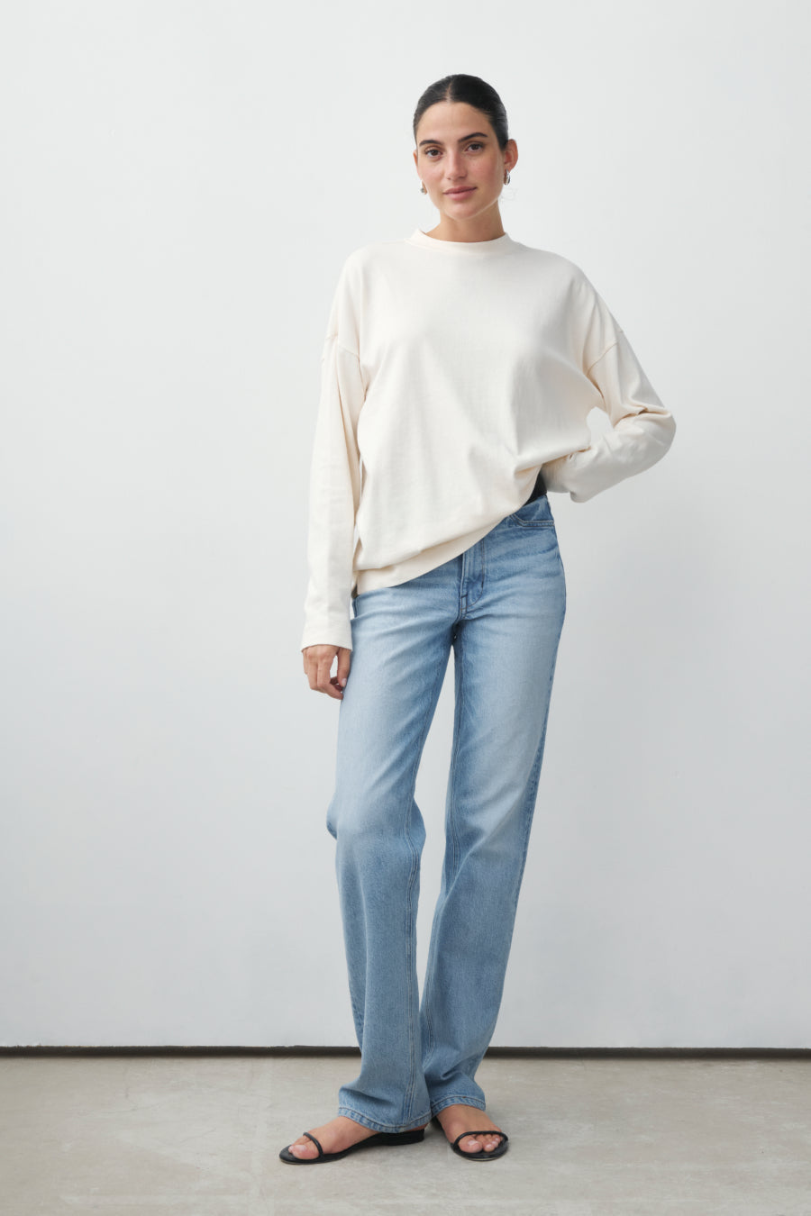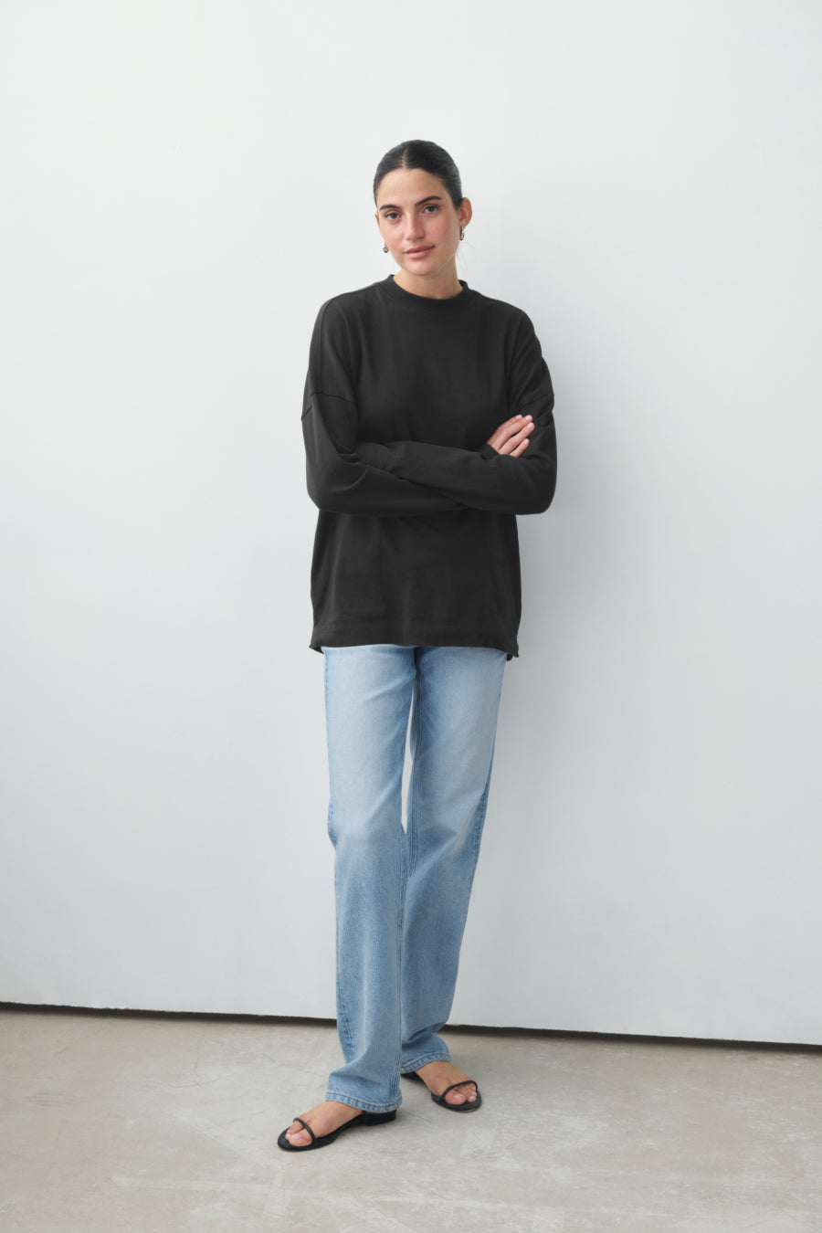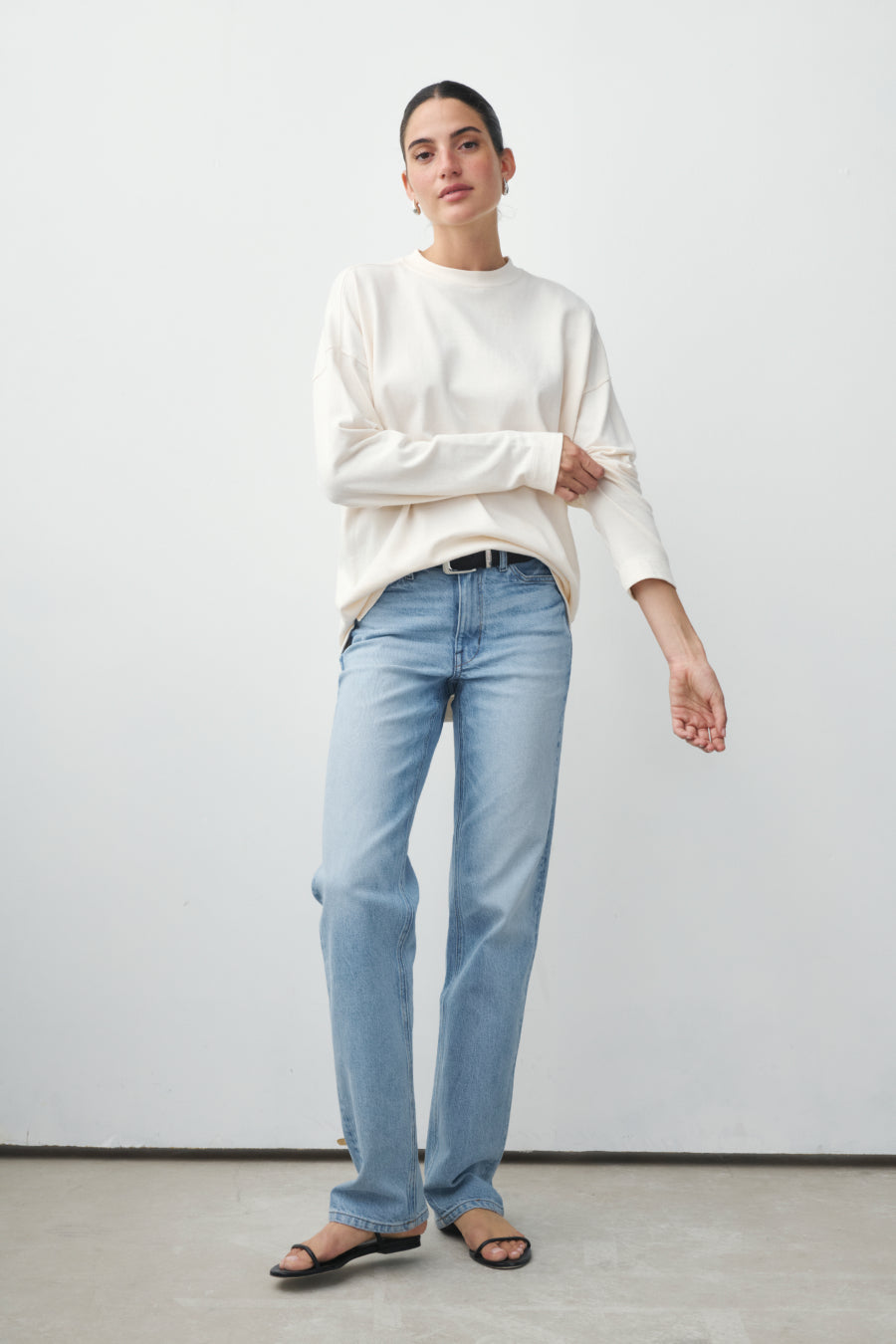 Our cult classic long-sleeve tee. Cut from our signature Dime Knit?, a super satisfying heavyweight jersey in a 10/1 knit. Heavier than a tee, lighter than a sweatshirt. Softest cotton you've ever felt, even after you wash and dry it. The hem is meant to cover your bum and the sleeves have a little extra length to them.