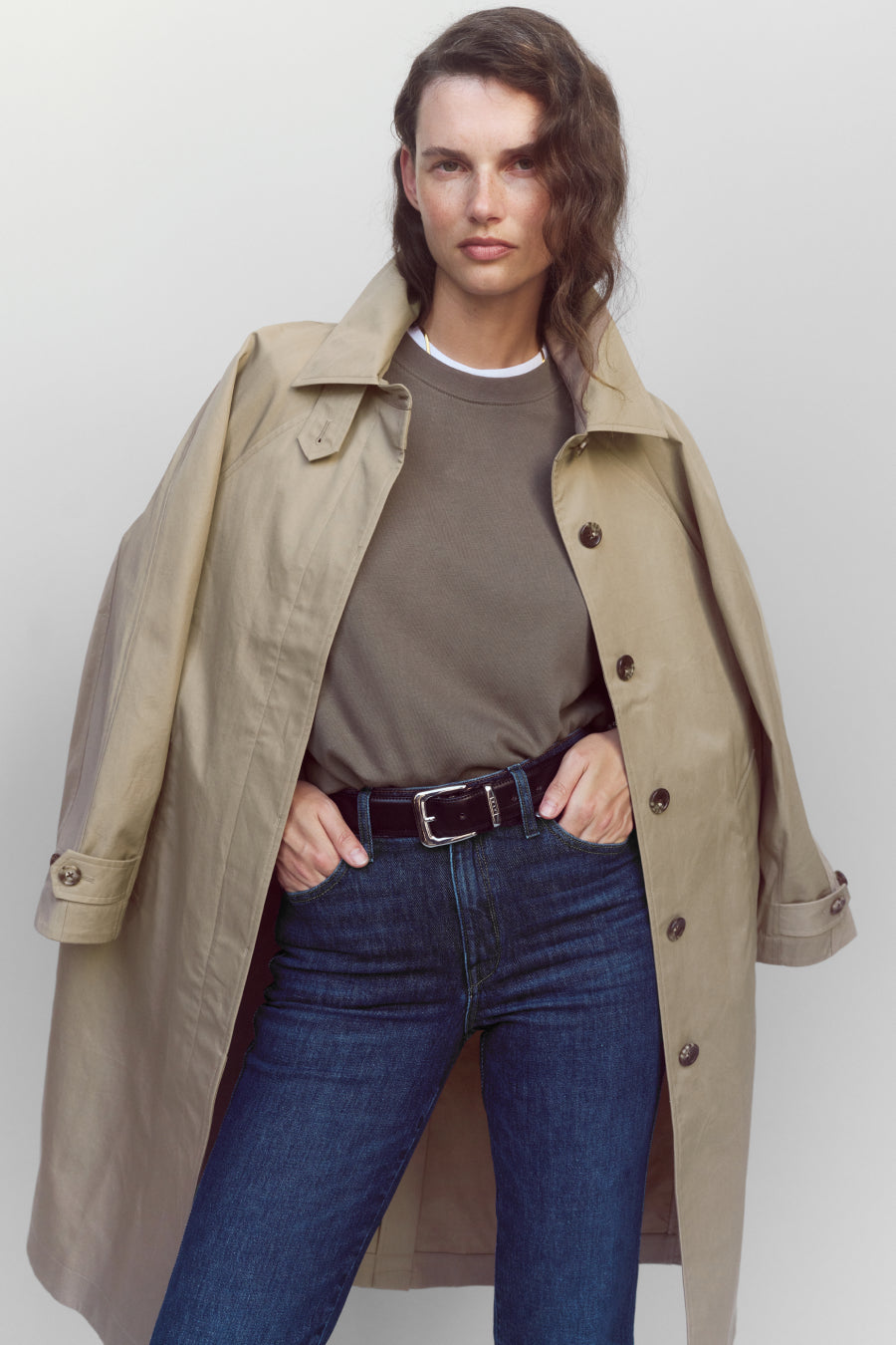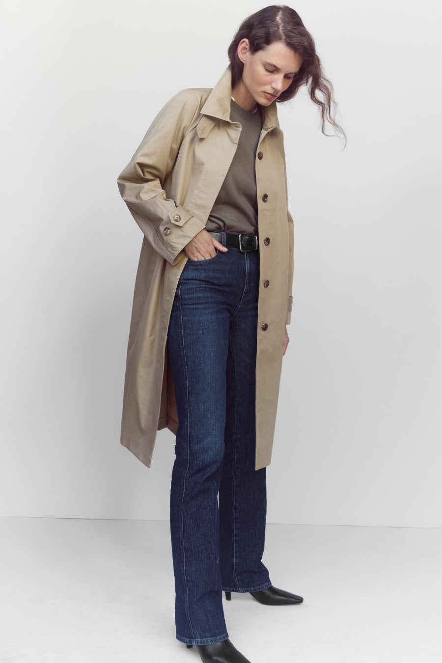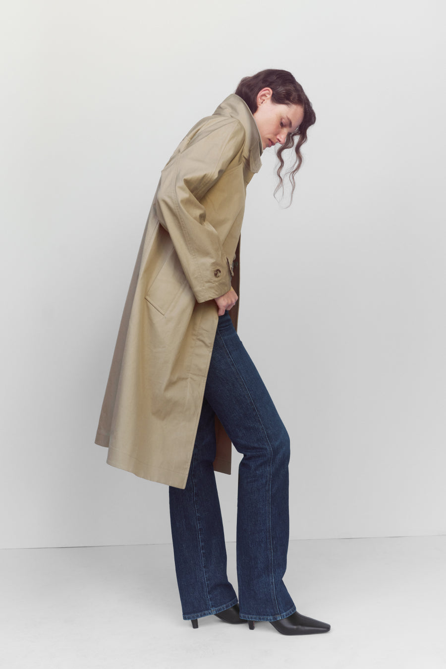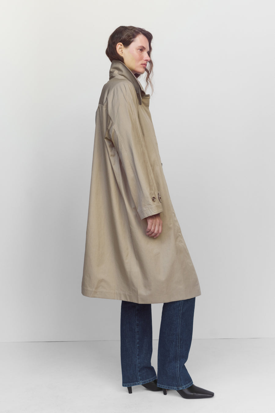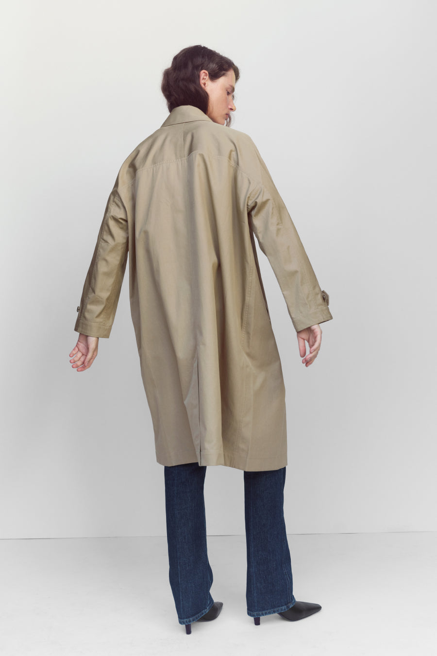 Year-round essential. A classic mac cut from gorgeous Italian cotton poplin with a water-resistant finish. Power collar, raglan sleeve, and a timeless calf-length silhouette.
