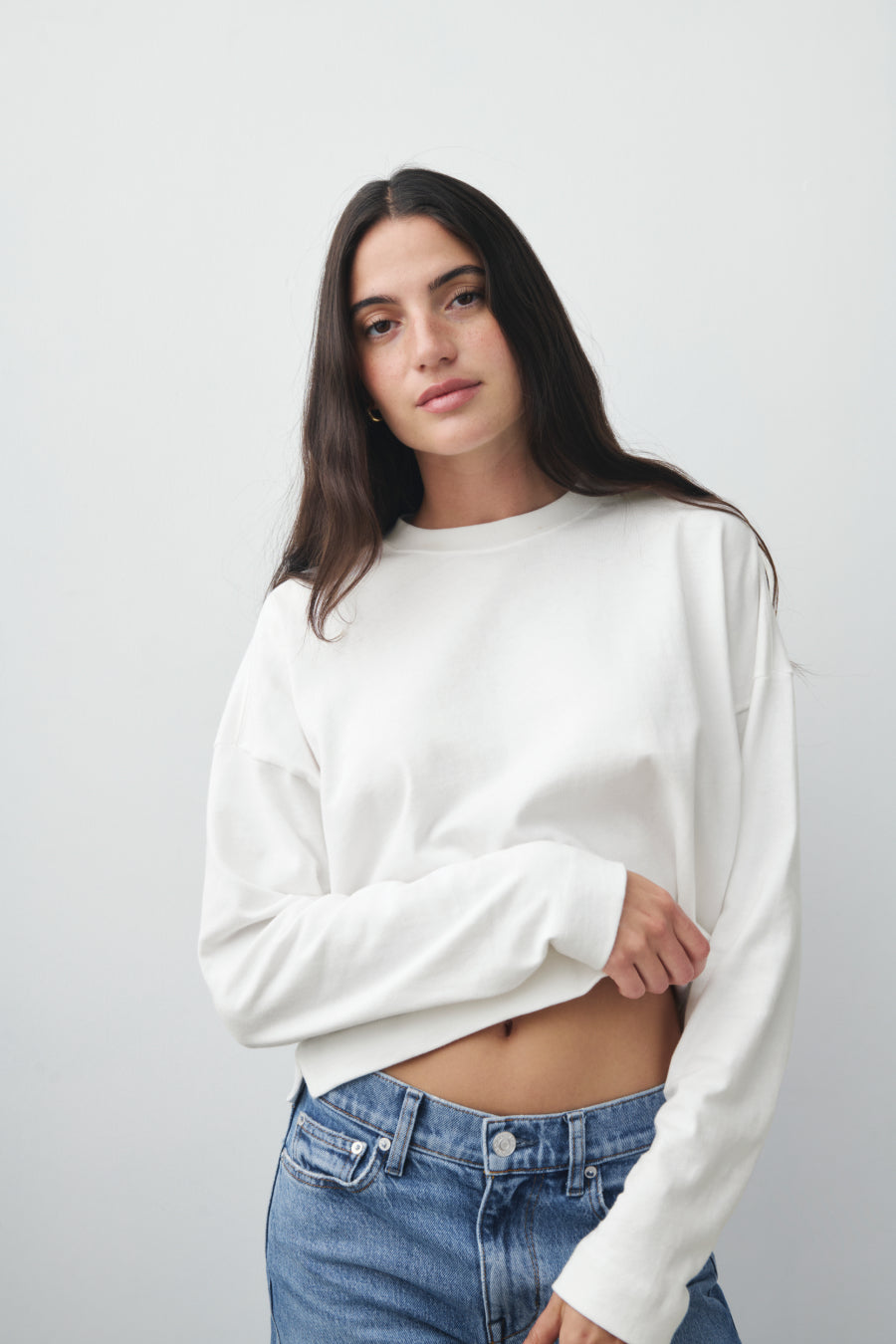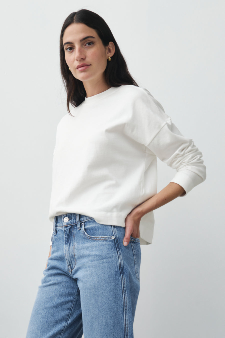 The kind of thing you throw on to grab coffee, then never take off. Cut from our signature 100% Dime Knit?, a satisfying heavyweight jersey. Heavier than a tee, lighter than a sweatshirt. Softest cotton you've ever felt, even after you wash and dry it. Hits right at the top of your favorite jeans. (Tuck it in or leave it out. Both look great.)?