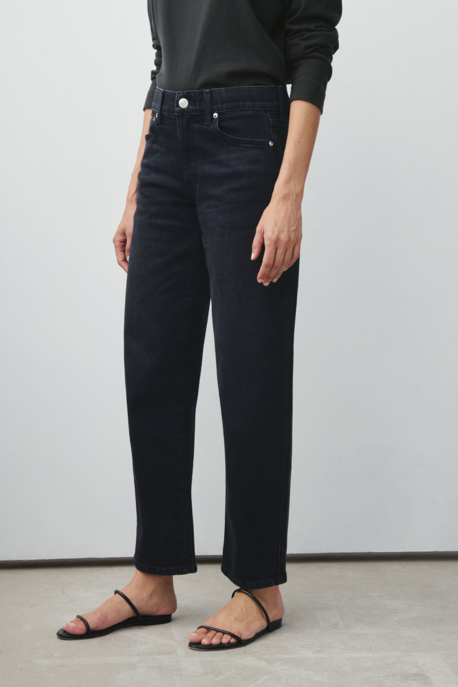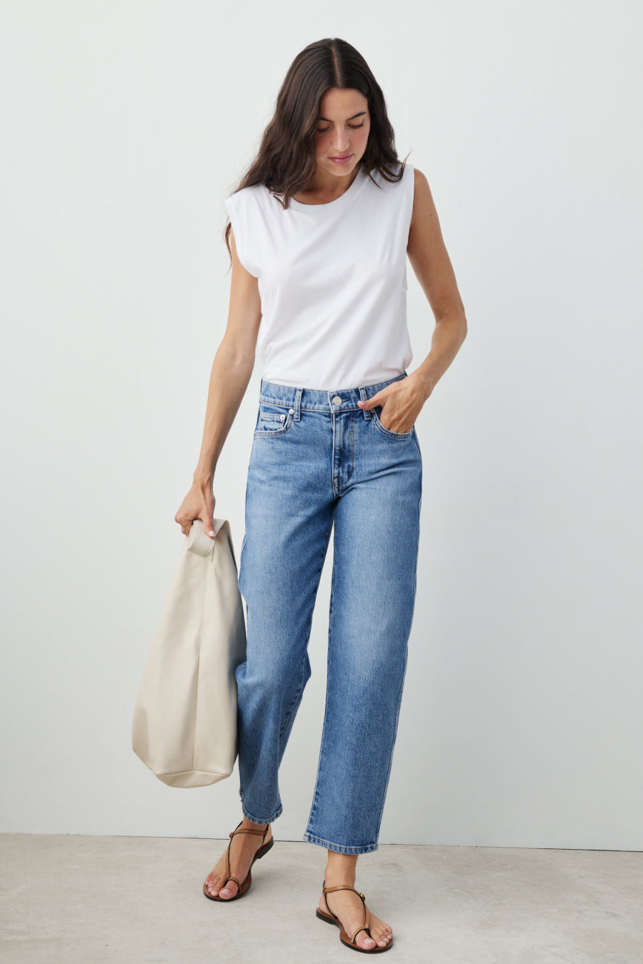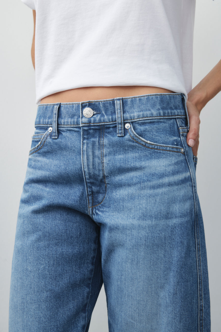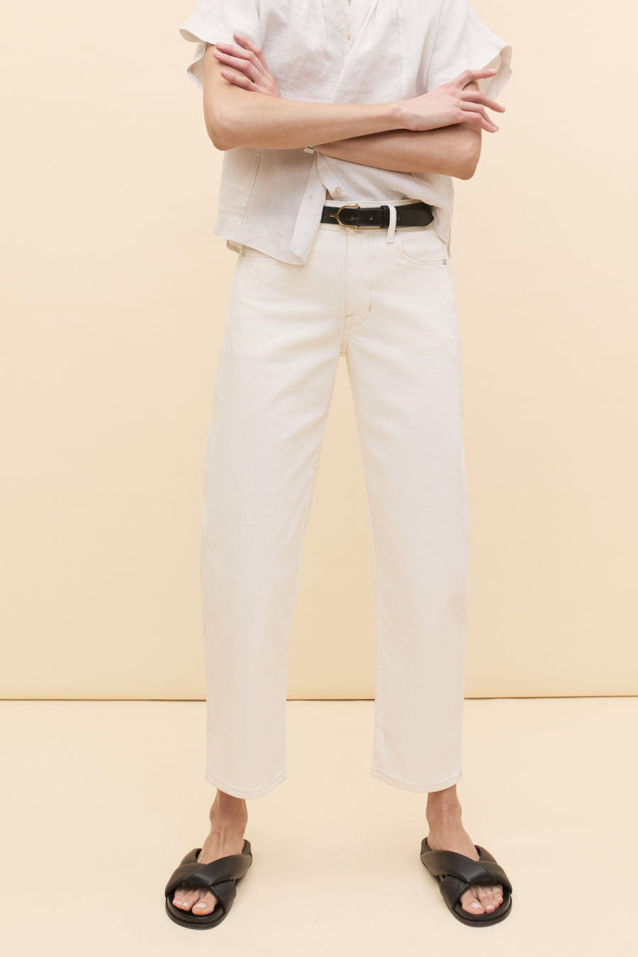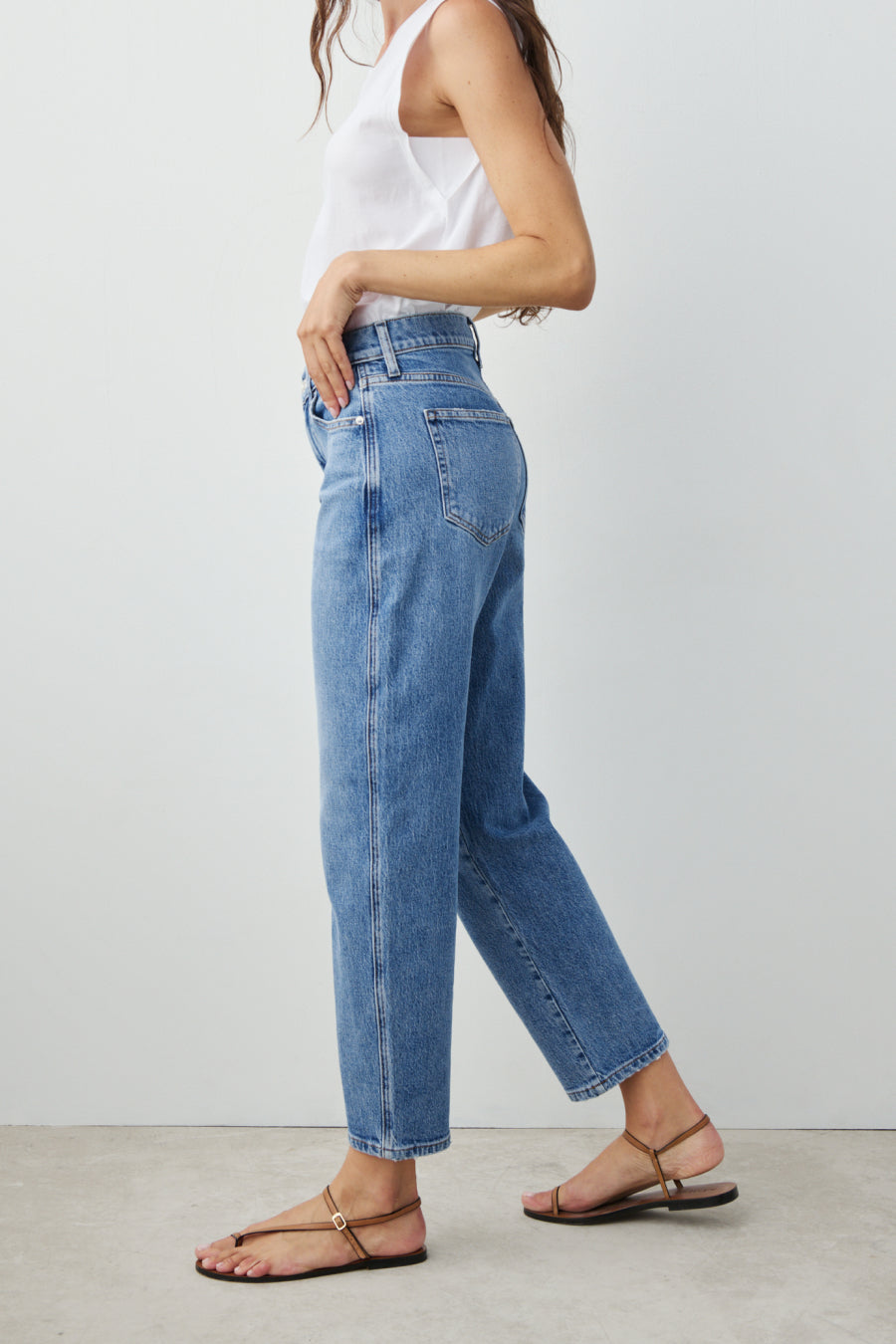 You will live in this pair. Anchors at the waist, then bows out into a laidback barrel leg. Superior denim. Made in L.A.