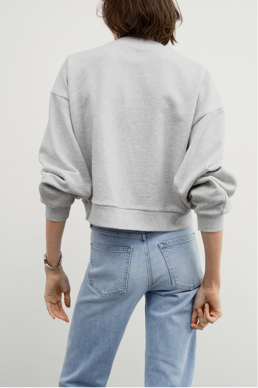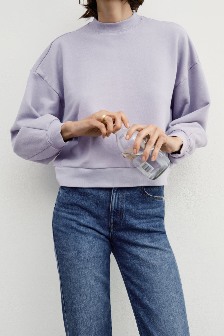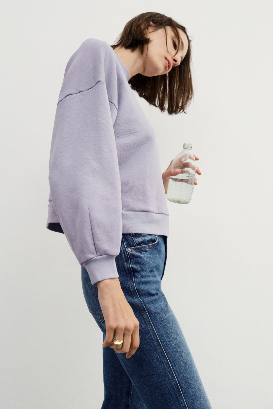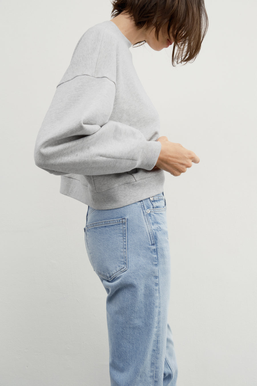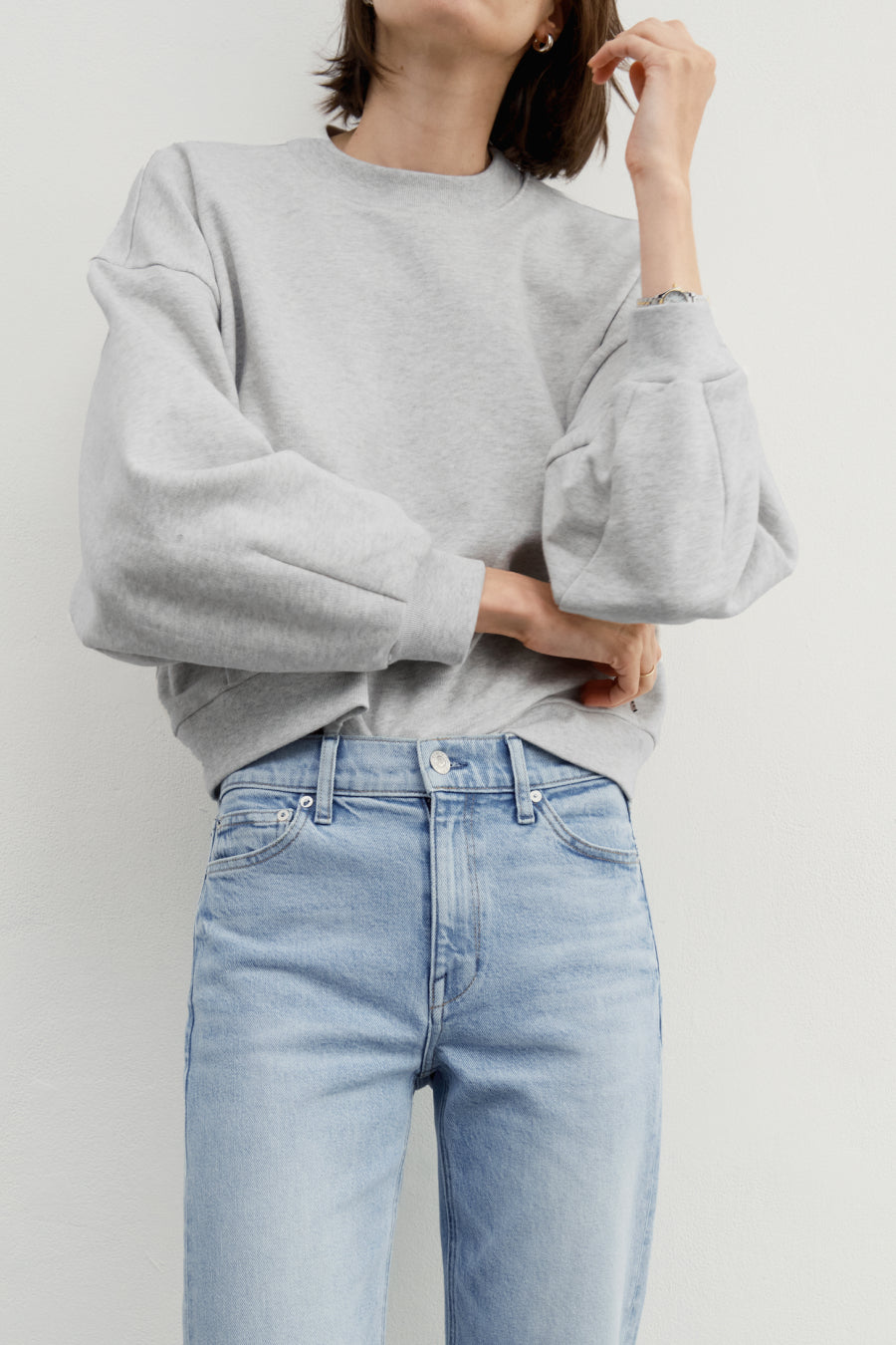 The only sweatshirt you'll ever need. Swingy cropped body, dropped armholes and voluminous drapey sleeve. Holds its shape no matter how often you wash it. Cut from the world's softest French terry: a soft, cozy, everyday luxury.