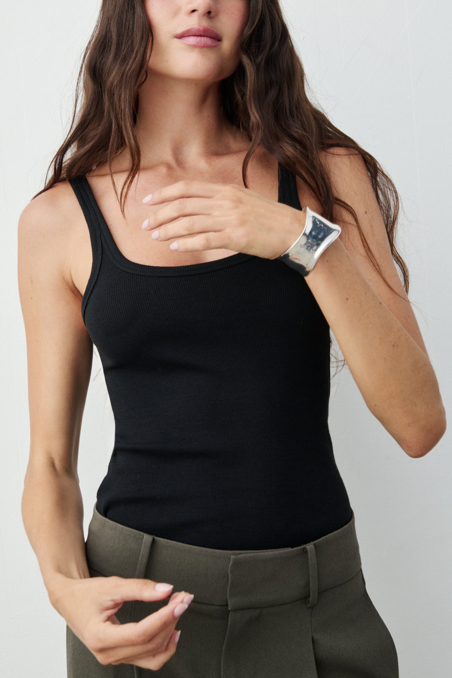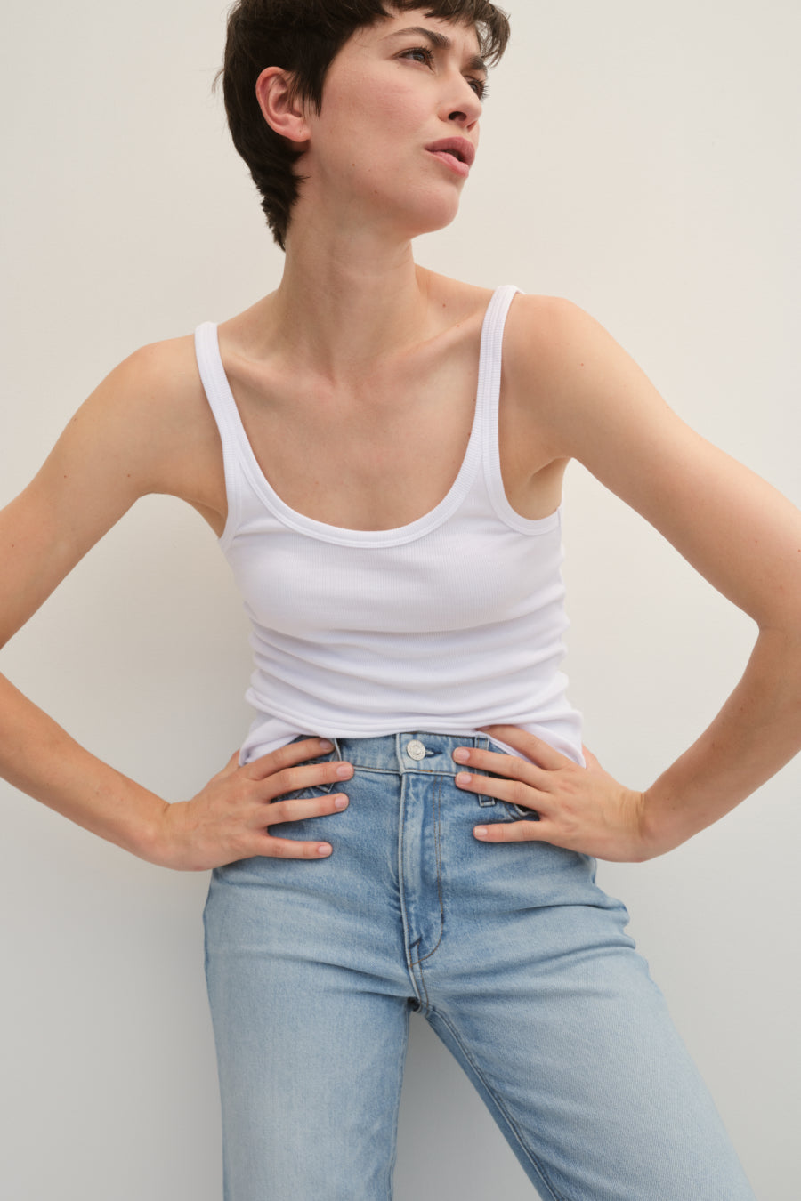 This tank top adds instant cool. Ultra-luxe, super flattering, bra-friendly scoop neck. Made from our signature super soft Pima cotton rib: long lasting, incredible snap-back.?