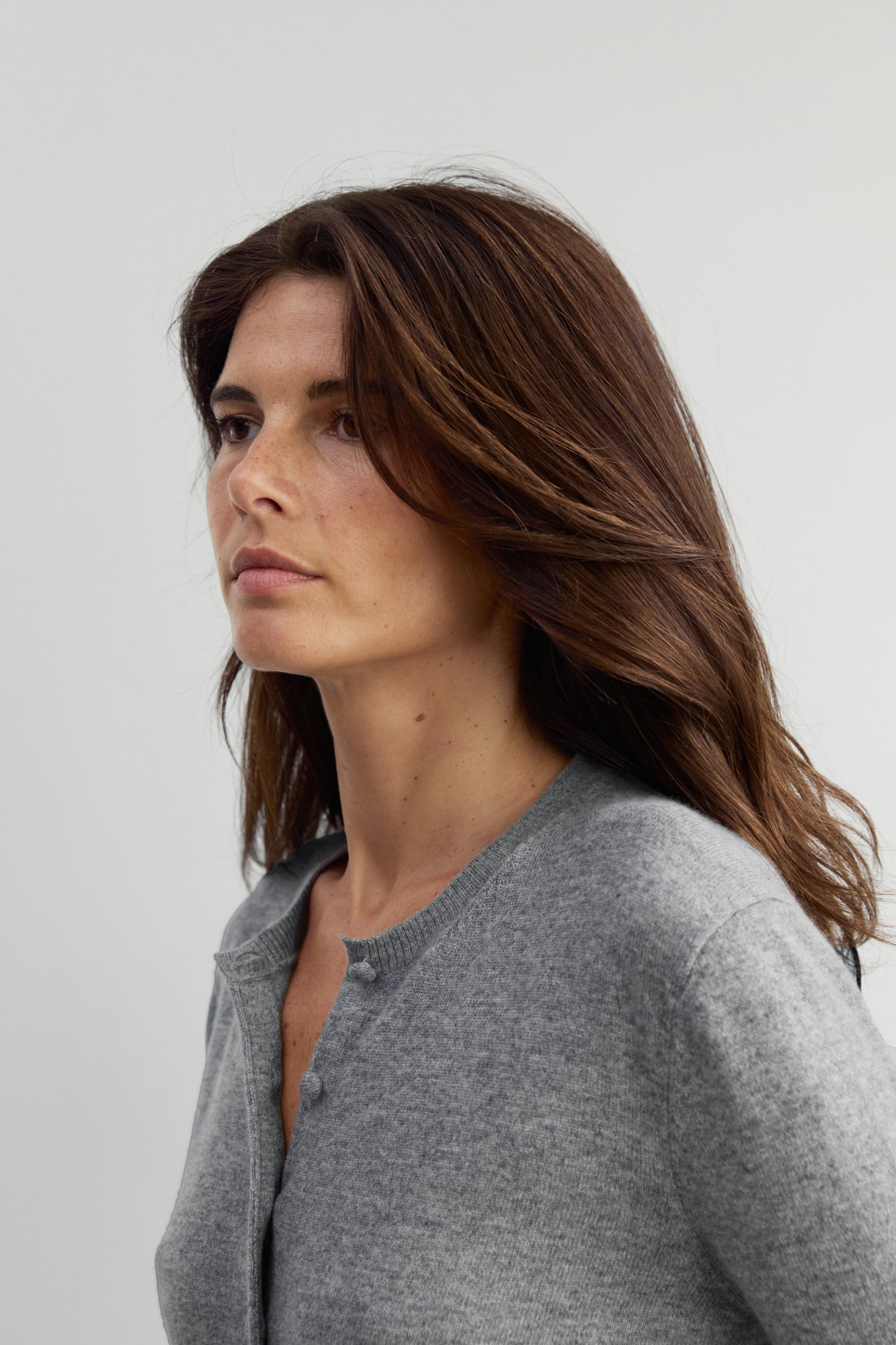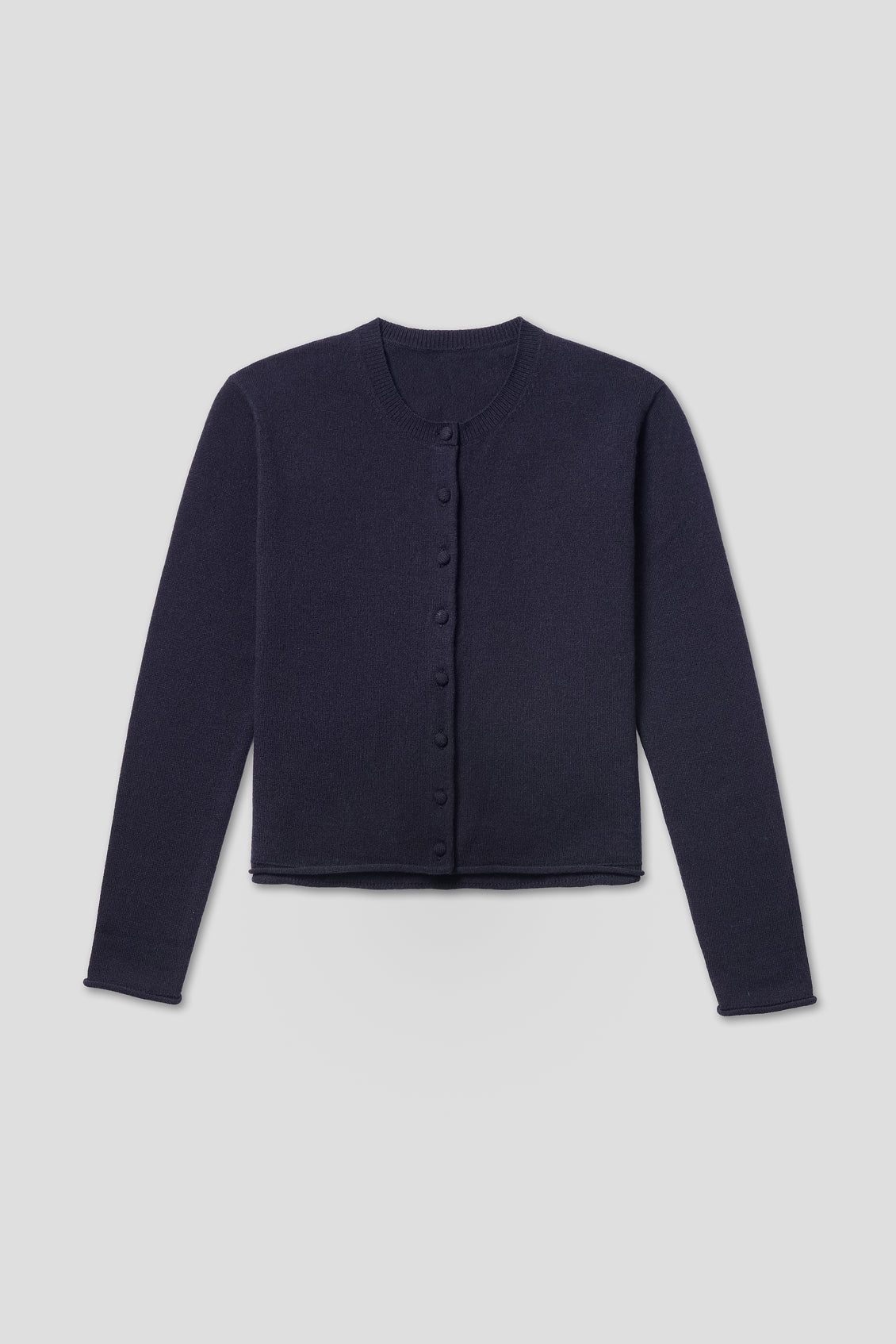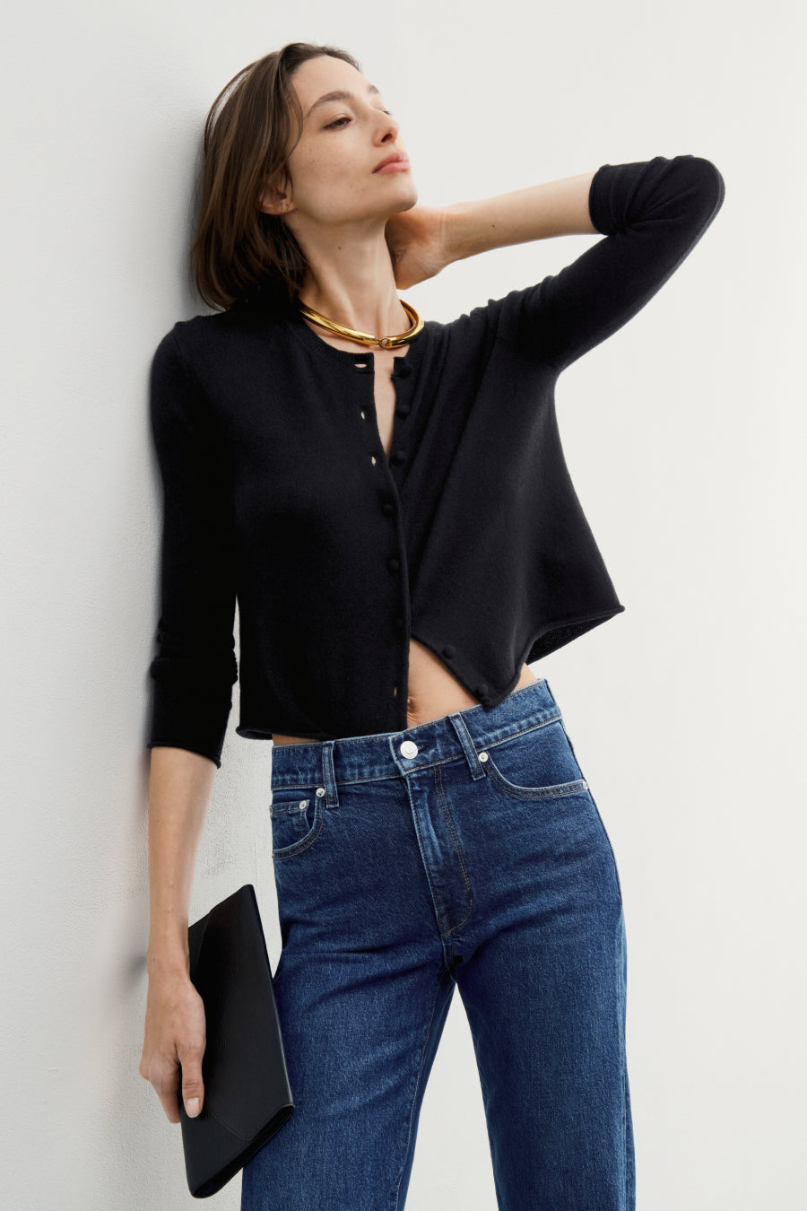 A wearable little luxury. Lightweight premium cashmere cut into a swing-bodied cardigan. Bracelet length sleeves, rolled hems, covered buttons. An ideal companion to every jean (every everything) in your daily rotation.?