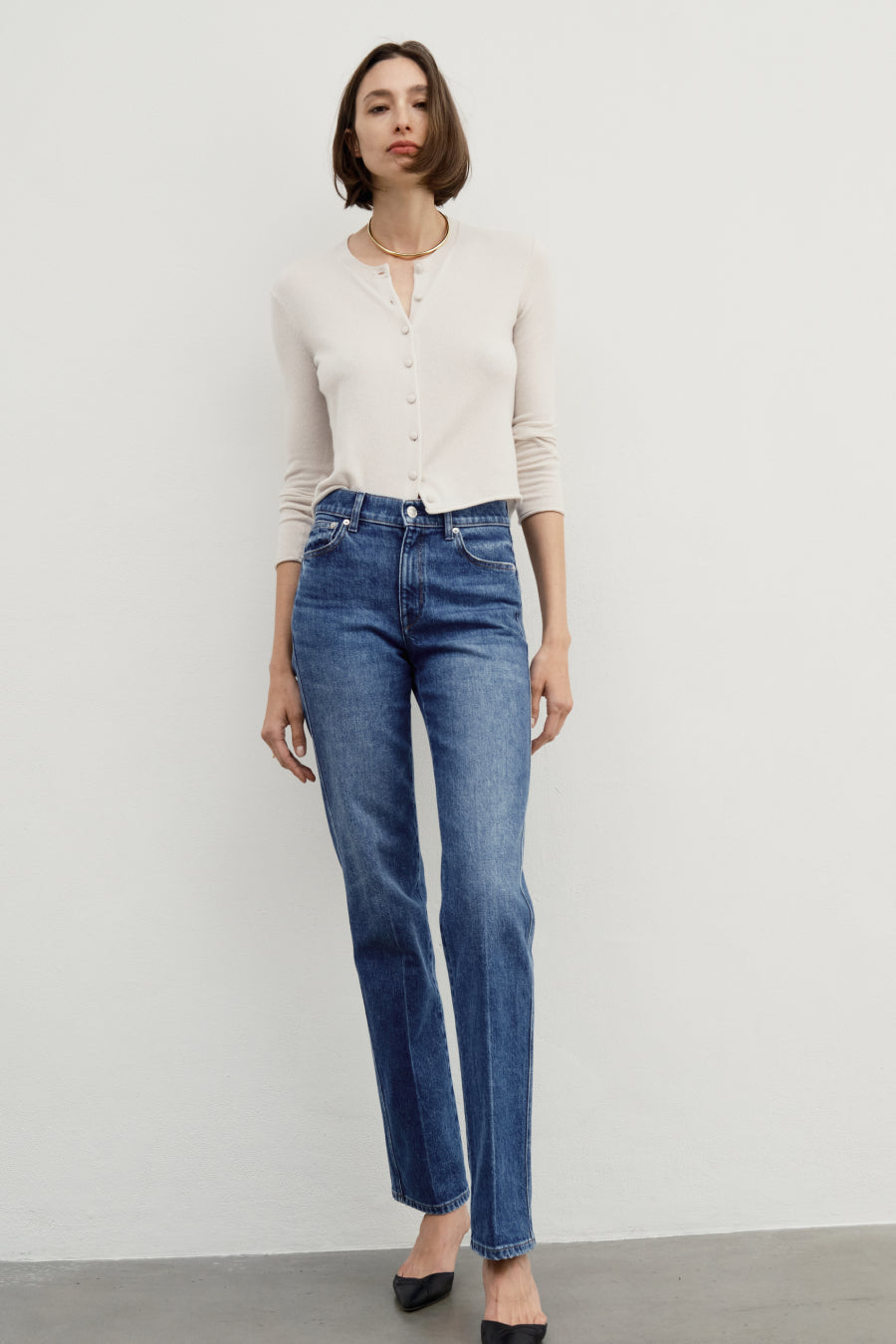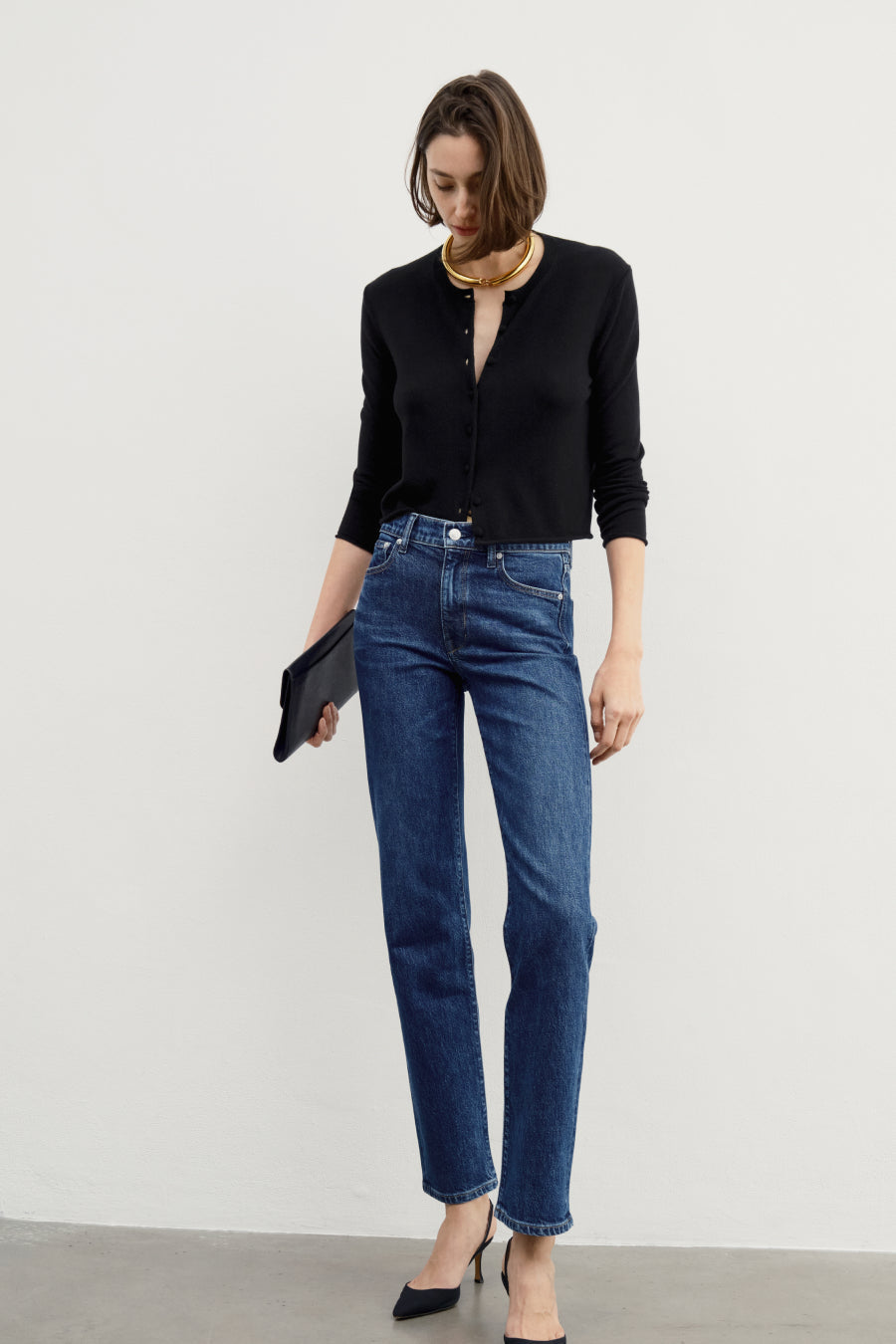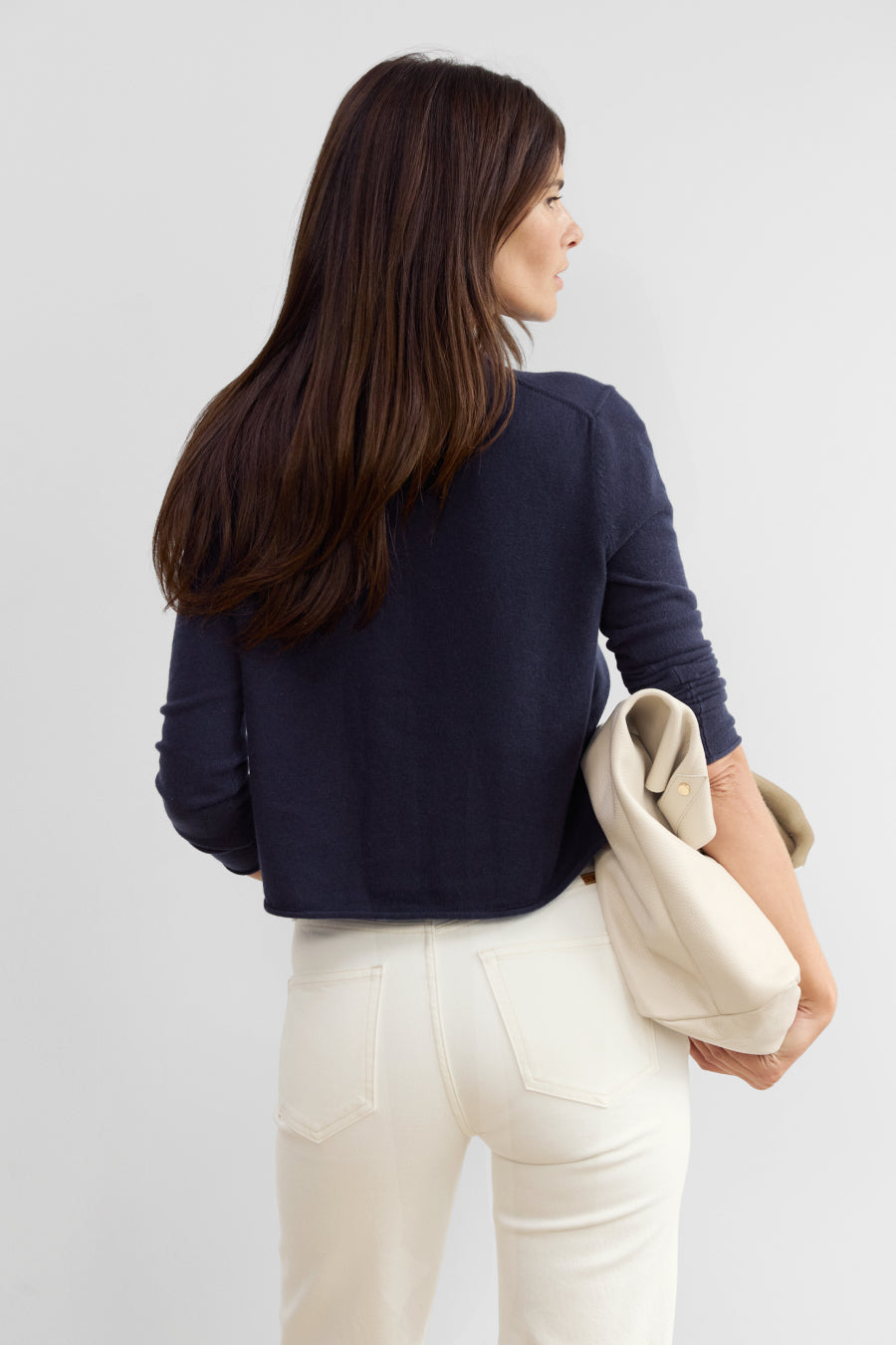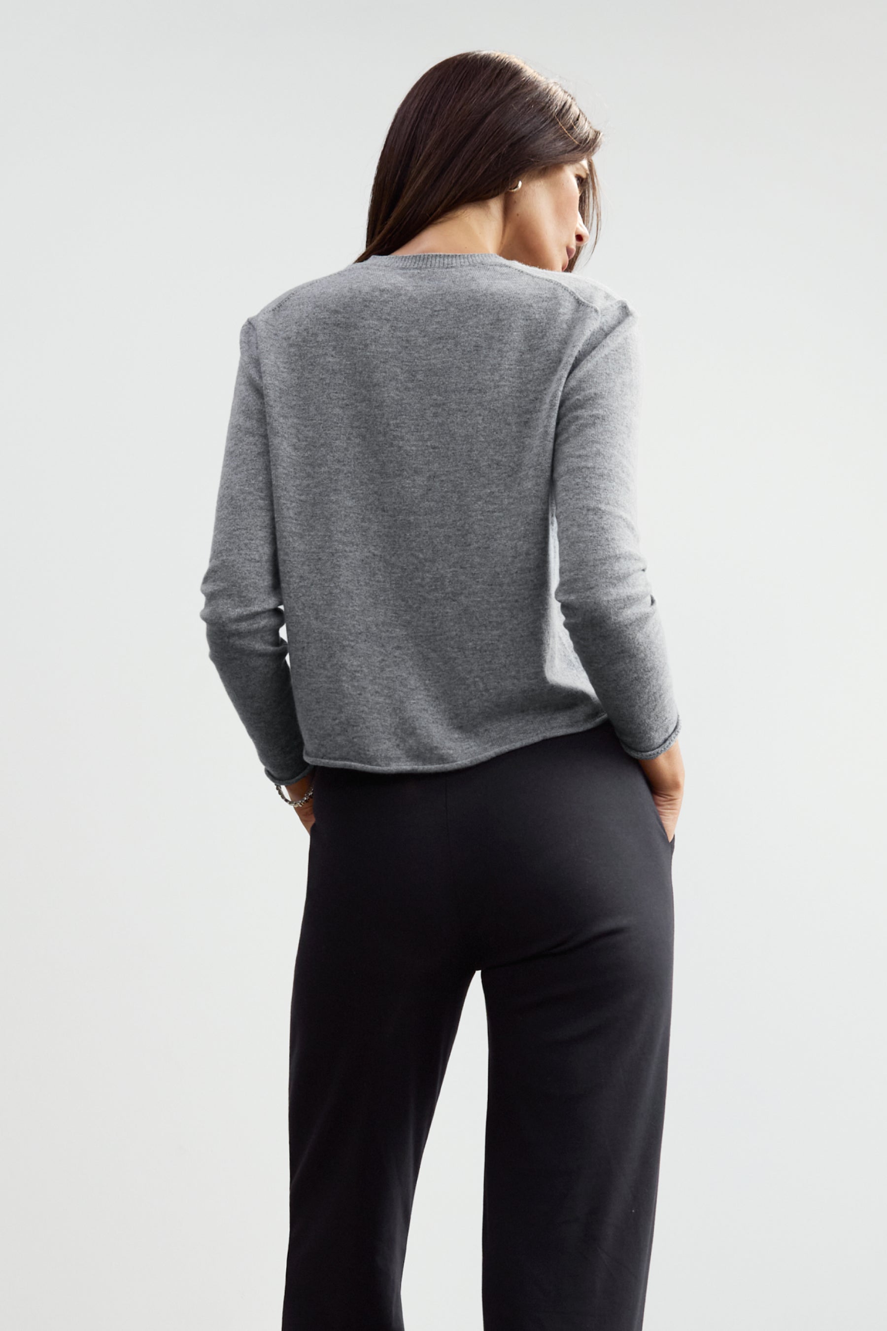 A wearable little luxury. Lightweight premium cashmere cut into a swing-bodied cardigan. Bracelet length sleeves, rolled hems, covered buttons. An ideal companion to every jean (every everything) in your daily rotation.?