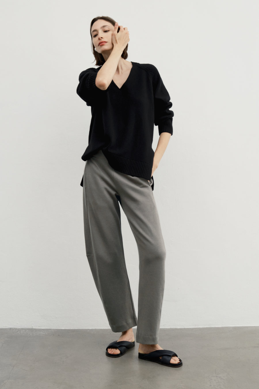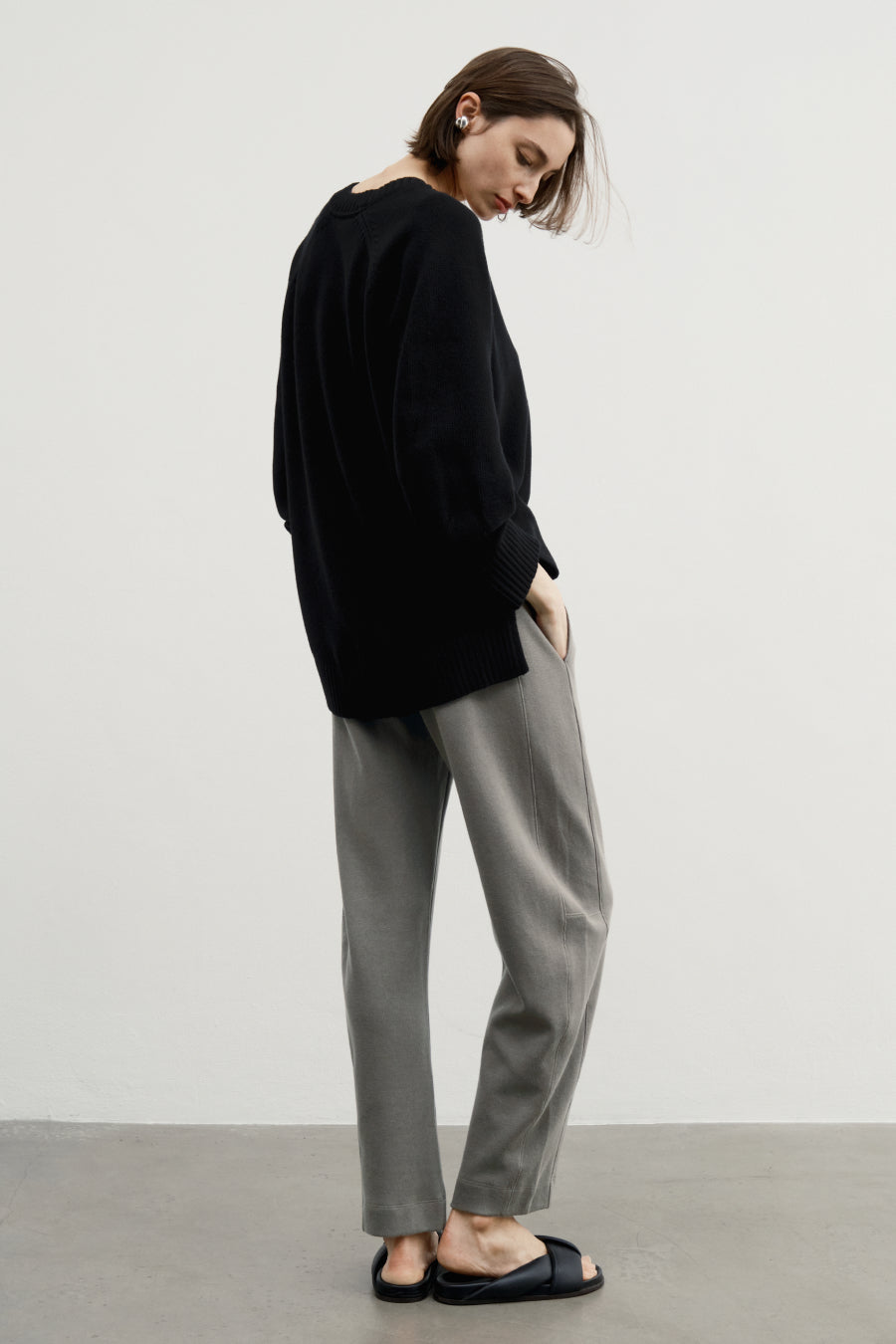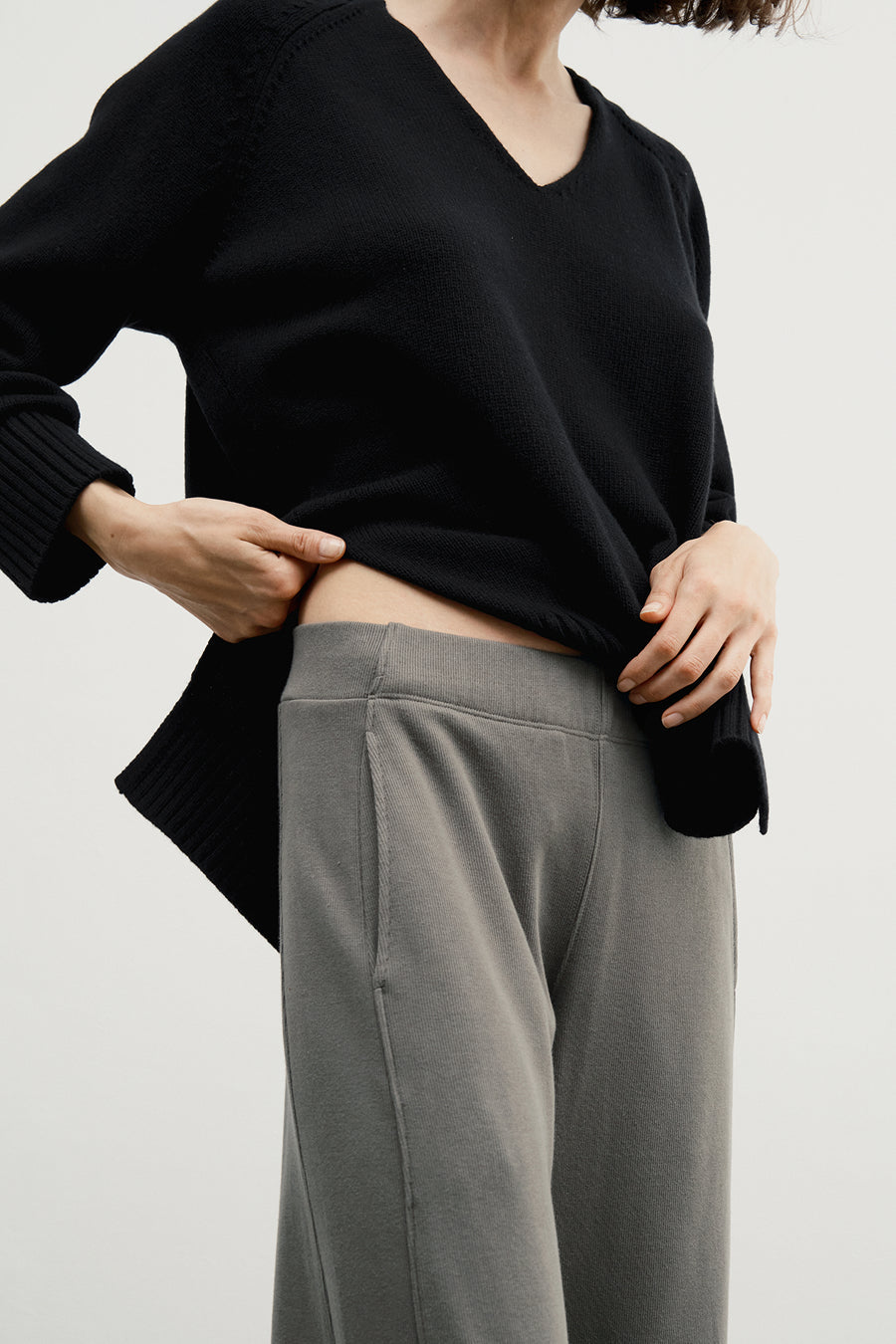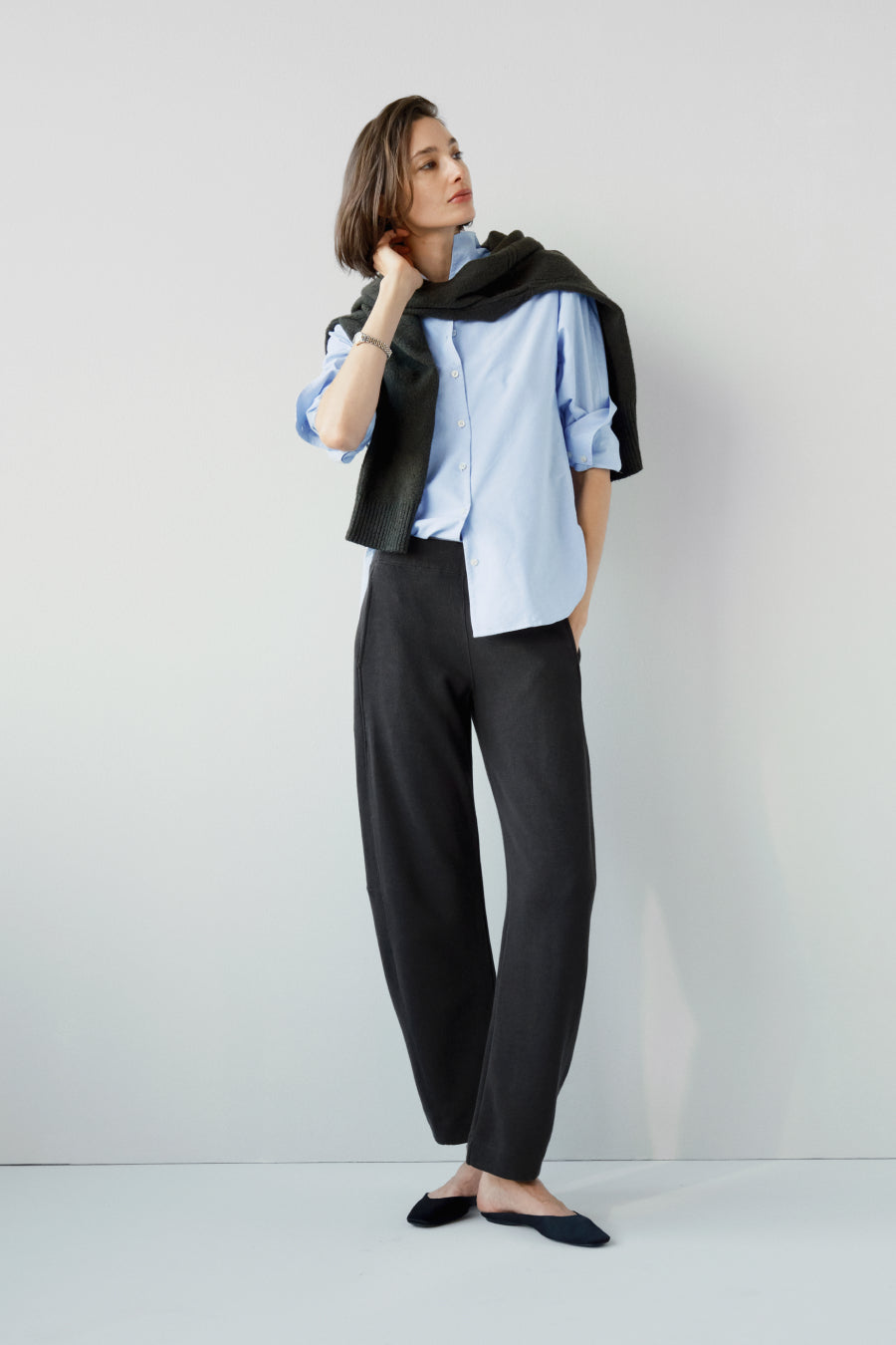 A laidback pair of pull-on pants in a soft, sturdy 100% pima cotton brushed rib knit. Easy barrel leg with a flattering waistband construction that keeps the front body clean. (Hidden elastic on the back and sides.) Cozy jersey pockets, because, hello, obviously. You'll never take them off.